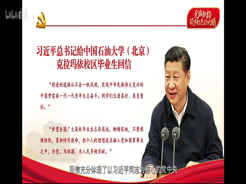 在本期微党课上,各位主讲老师分别从不同角度给大家讲述了党旗飘扬的故事。来自中国石油大学(北京)的老师主要介绍了习近平总书记给中国石油大学(北京)克拉玛依校区毕业生的回信,希望青年一代能在学思践悟中坚定理想信念,在奋发有为中践行初心使命,用实际行动贡献自己的青春力量。天津大学的老师讲述了在疫情防控期间,该校学子各行其善,用自己的实际行动奉献社会,还特别讲述了一名职工在抗疫时的中国心。中南财经政法大学的老师讲述了自己作为一名高校教师和中共党员,积极报名参加火神山、雷神山医院的建设工作,并以一名工程师的身份与时间赛跑,完成了两所医院建设的奇迹。厦门大学的老师从党中央所召开的新闻会议出发,强调新闻舆论工作的重要性,并讲述了厦大学子在武汉封城期间积极号召志愿者从全球购买救援物资的故事,同时该校两名党员同学分享了自身的抗疫经历。华中农业大学的老师讲述了本校师生发挥专业本领,用学识扶贫助农,带领贫困地区群众开发特色专业,提高农业生产技术,拓展农产品销售渠道,从而助力脱贫攻坚战的胜利。