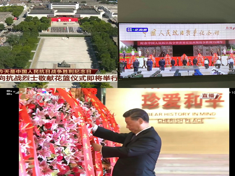 本网讯(文/彭静 图/耿文)9月3日是中国人民抗日战争暨世界反法西斯战争胜利75周年纪念日。上午,习近平总书记等党和国家领导人同首都各界代表一起,在中国人民抗日战争纪念馆向抗战烈士敬献花篮。本科生党支部全体成员在胜利日收看直播,一起重温抗战历史,缅怀革命先烈!