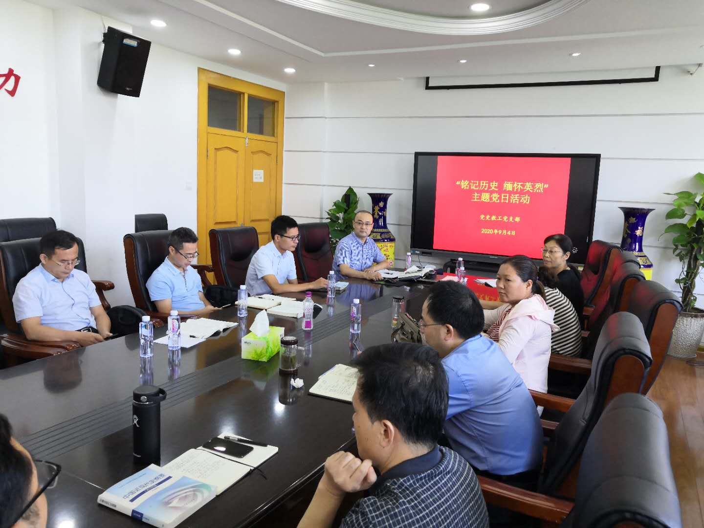 本次主题党日活动是2020年以来支部首次线下活动,以“铭记历史 缅怀先烈”为主题,采取集体观看视频、微党课学习形式进行。9月3日,是中国人民抗日战争暨世界反法西斯战争胜利75周年纪念日,当天上午,纪念中国人民抗日战争暨世界反法西斯战争胜利75周年向抗战烈士敬献花篮仪式在京举行,习近平等党和国家领导人同首都各界代表一起在中国人民抗日战争纪念馆向抗战烈士敬献花篮。为铭记历史,缅怀先烈,全体与会党员怀着崇高的敬意,在支部书记带领下集体重温活动视频。观看结束后,与会教工党员进行了交流发言。老师们认为,作为新时代的高校思政课教师,一定要牢记幸福生活的来之不易,一定要全心全意投入到自己的工作中去,为中华民族伟大复兴贡献自己力量。