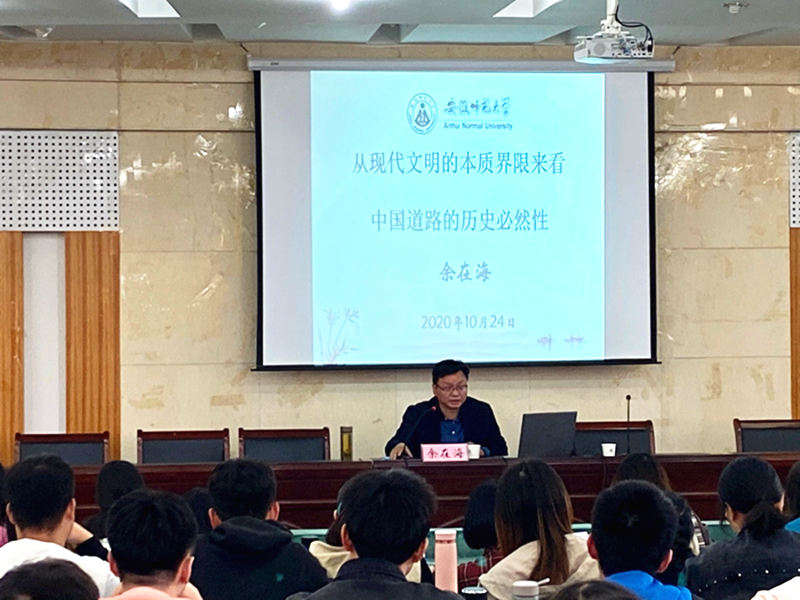 讲座伊始,余在海从为什么要解读“中国道路”的问题入手,强调老员工党员的第一要务是认真学习,通过学习深刻理解马克思主义,理解中国道路。随后,余在海从中国道路问题的缘起及其解决方法、现代文明的本质及其界限和基本结论三个方面解读中国道路。在近两个小时的讲座中,余在海用翔实的案例,深入浅出地讲解了如何用马克思主义历史的、批判的世界观与方法论来研究中国的未来向何处去的问题以及中国如何成功地走出一条不同于西方的现代化道路。