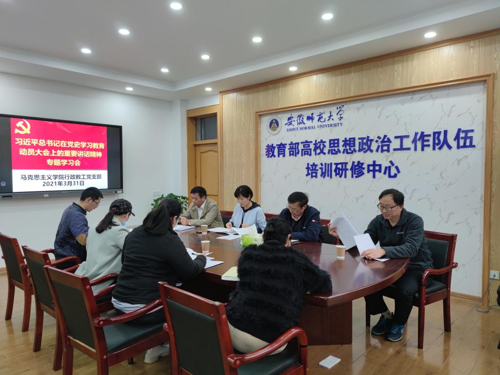 本网讯(行政教工党支部)3月31日下午,beet365行政教工党支部在公司三楼会议室召开支部大会,专题学习习近平总书记在党史学习教育动员大会上的重要讲话精神,部署党史学习教育工作。会议由支部书记汤小宾主持。
