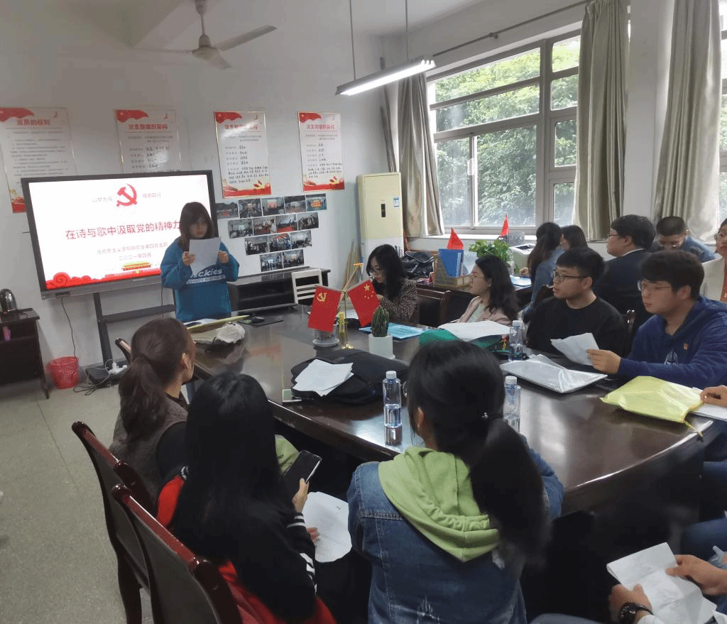 (文/摄 朱新原)4月28日下午,beet365研究生第四党支部在公司行政楼一楼研究生会办公室开展“吟党史,唱党歌”专题党日活动。此次会议由支部纪检委员赵美丽主持,全体党员参加。