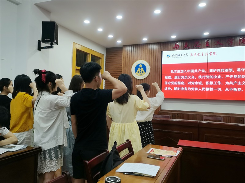活动在观看视频中开始,通过视频的观看,党员们懂得了政治生日践行的是对信仰的承诺,从被党支部通过为预备党员的那一刻,伴随着共产党员的新身份,党员的政治生命随之开启。随后,支部书记于快向过政治生日的党员同志送上精美的贺卡和诚挚的祝福,并一起合影留念。在谈入党初心的环节,毕业班党员们积极发言,纷纷表示日后会继续不忘初心,砥砺前行。最后一个环节为重温入党誓词,在领誓人于快的带领下,毕业班党员高举右拳庄严宣读入党誓词,神情庄重、精神饱满,声音铿锵、句句千钧。此次主题党日活动在庄严的入党宣誓中结束。