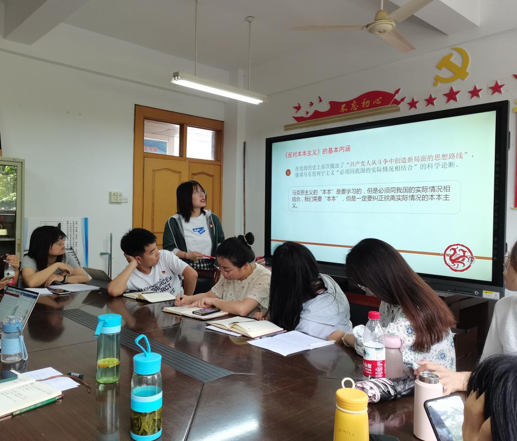 会上,郭华鑫基于对文本《论人民民主专政》的分析,展现了中国共产党从新中国创立初期到今天始终坚持以人民为中心,为广大人民群众谋利益的发展历程。程燕从不同角度对《反对本本主义》进行了解读,强调党员要坚持“从群众中来,到群众中去”的群众路线,紧密联系群众,积极发挥先锋模范作用。此外,大家还就青年党员学习党史的必要性问题发表了自己的观点,大家沉浸在党史学习教育的浓厚氛围中。