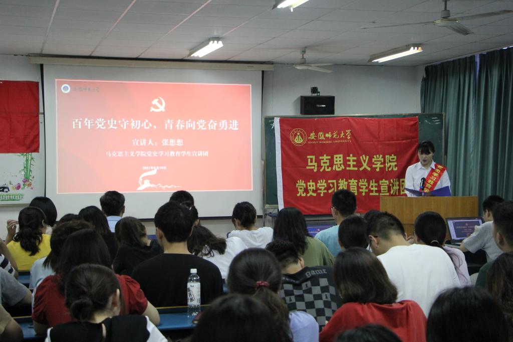 在红色影片放映之前,公司党史学习教育员工宣讲团成员、2020级马克思主义理论专业研究生张想想同学以“百年党史守初心、青春向党奋勇进”主题开展党史学习教育微宣讲。在宣讲中,梳理了近代以来中国遭遇的苦难与不幸,在此背景下解读了无数志士仁人为唤醒民众之觉醒、抵御西方之侵犯、成立中国共产党组织、建立新中国所作出英勇牺牲的壮举。从回顾百年的奋斗路再到眺望眼前的奋进路。描绘出一幅中国共产党百年奋斗的艰苦历程。那段光辉的岁月也为今日之青年传递了青春最亮丽的底色便是奋斗的精神。强调了实现中华民族的伟大复兴,新时代的“青年应传承红色基因,延续共产党人的精神血脉,从党史里汲取力量,鼓起迈进新征程、奋进新时代的精气神,让青春在党和人民最需要的地方绽放,以青春之我,成就青春之中国”!