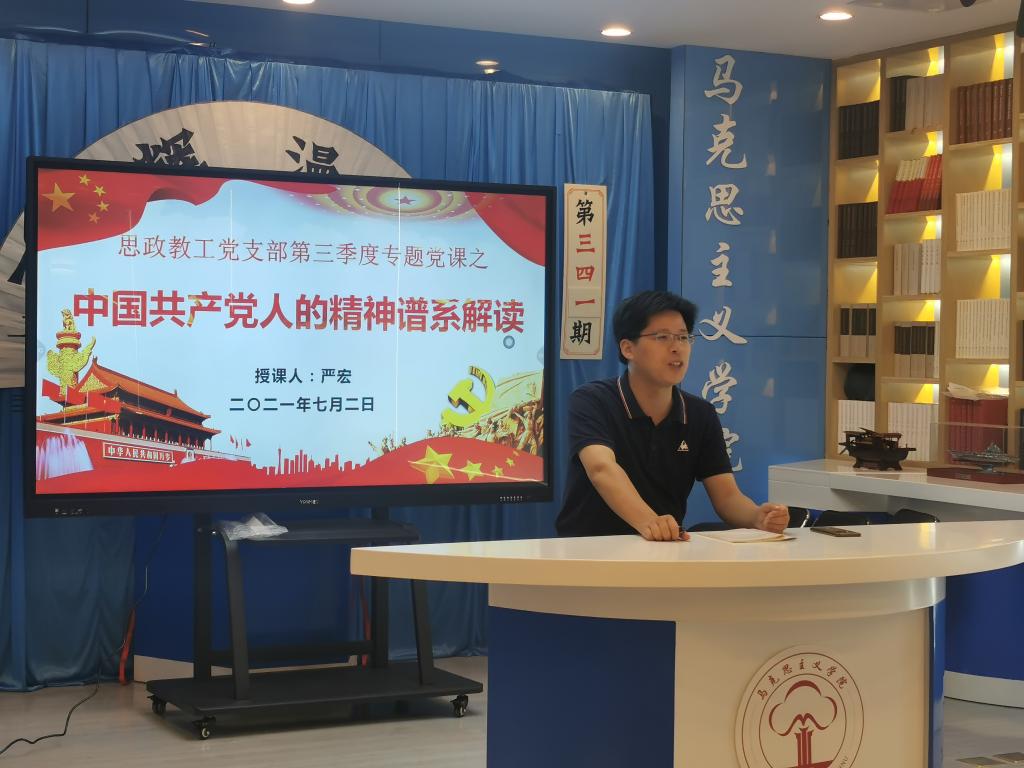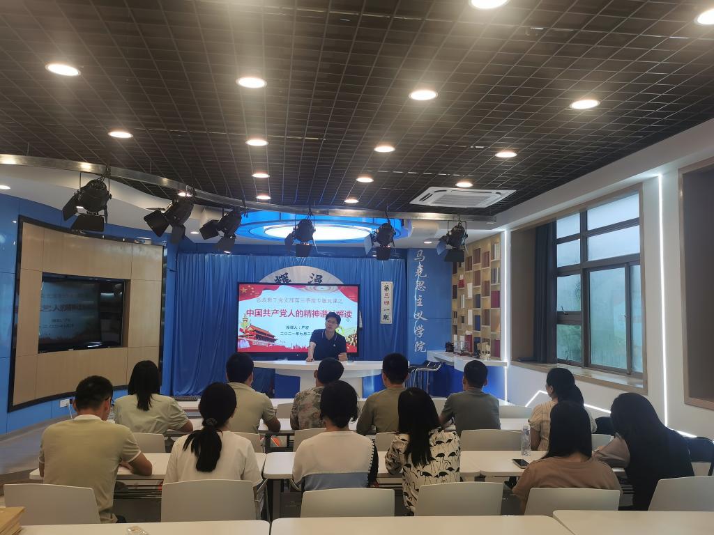 本网讯(思政教工党支部)7月2日下午,公司党委书记严宏教授以“中国共产党人的精神谱系解读”为主题,在公司二楼皖南红色文化虚拟仿真实训中心为思政教工党支部讲授专题党课。