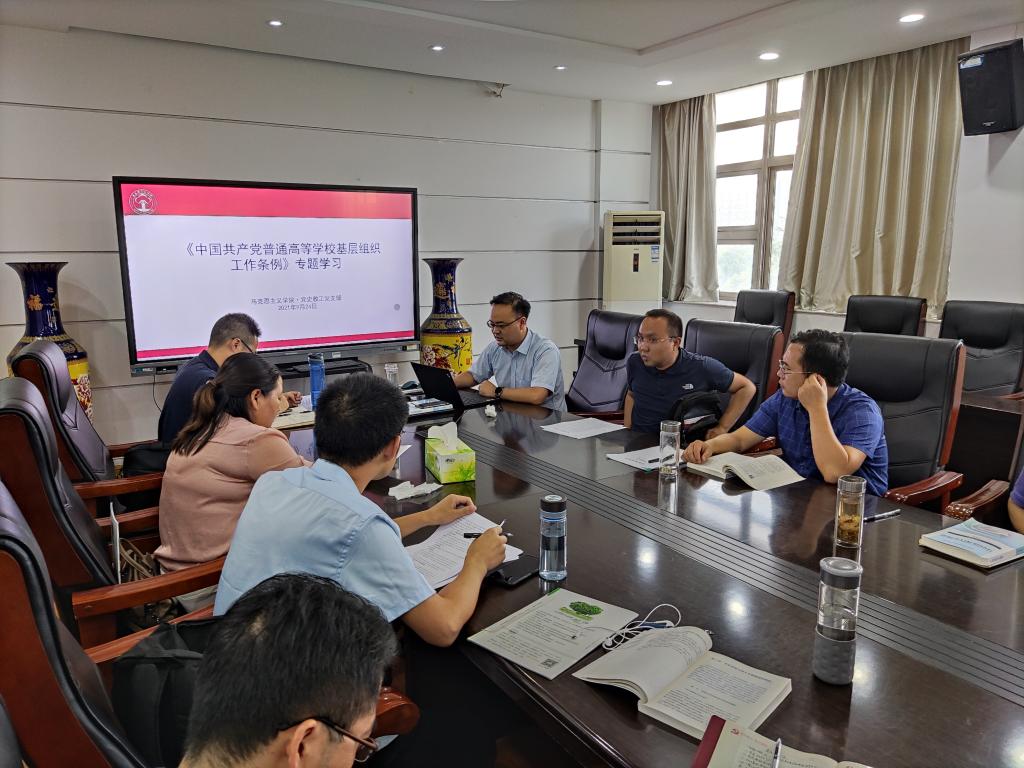 本网讯(党史教职工支部 张鑫)9月24日下午,党史教工党支部在党员活动日中开展了《中国共产党普通高等公司基层组织工作条例》(以下简称《条例》)专题学习和师德师风学习教育活动,活动由支部书记郭理主持。