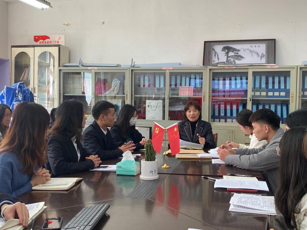 本网讯(文/摄 汪翠萍)11月8日上午,思政研究生党支部在公司一楼研究生会办公室召开支部大会,讨论接收预备党员相关事宜。公司党委副书记刘玉艳出席指导。会议由支部书记齐永佳主持,全体党员同志参加。