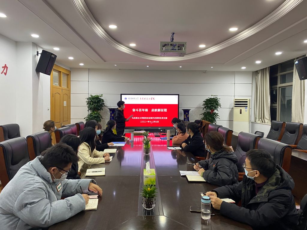 本网讯(文/摄 张腾飞)12月9日晚,党史近现代史研究生党支部在公司四楼第一会议室开展“奋斗百年路,启航新征程”主题党日活动。此次会议由支部书记陶娴静主持,全体党员参加。