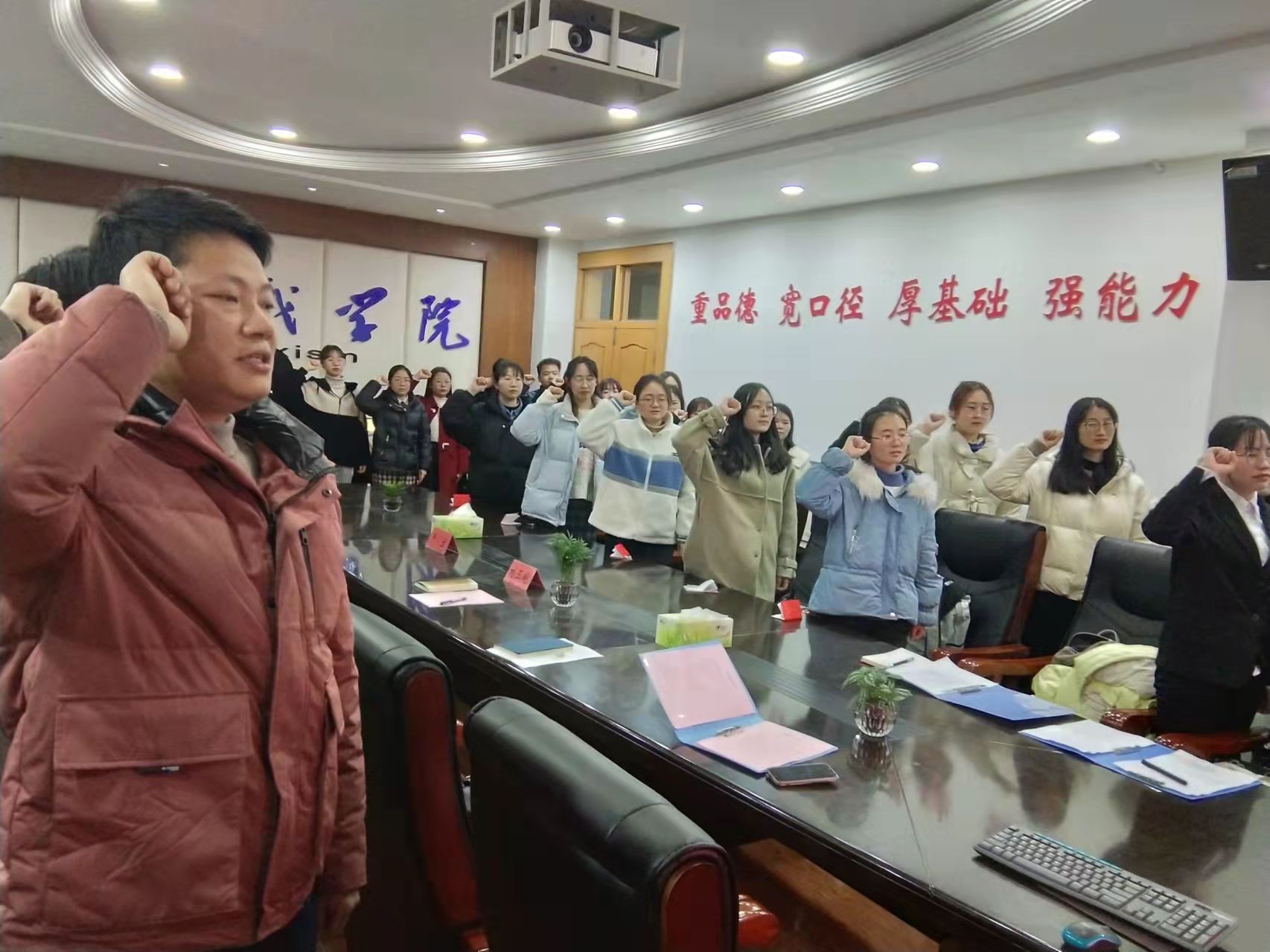 严宏作总结讲话,他对新老党员们充满了期待,并提出了要坚定理想信念,坚持马克思主义立场;要在日常的学习、工作与生活中增强“四个意识”,坚定“四个自信”,践行“两个维护”;要严格要求自己,努力保持共产党员的先进性的要求。活动在慷慨激昂的国际歌中圆满落幕。