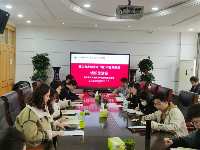 本网讯(文/图 喻雯艳)2022年2月28日下午,马中化研究生党支部在公司四楼第一会议室召开“踔厉奋发向未来,笃行不怠开新局”专题组织生活会。公司党委委员李祥兴出席指导,支部全体党员参加。会议由纪检委员赵祝涛主持。