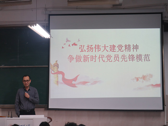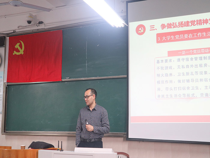 课上,项家春从伟大建党精神基础和条件开始讲起,细致分析了建党精神形成的时代背景、实践基础,与学员们分享了伟大建党精神的内涵,即“坚持真理、坚守理想,践行初心、担当使命,不怕牺牲、英勇斗争,对党忠诚、不负人民。”他指出,目前高校员工党员发挥先锋模范作用的情况中存在一些不容乐观的现状,比如入党后出现“船到码头车到站”的思想倾向,他告诫在座各位入党积极分子一定要不忘初心牢记使命,谨记全心全意为人民服务的宗旨,树立为集体、为他人服务的意识,将个人利益与集体利益紧密结合在一起,从而发挥好党员先锋模范作用,用一己之力带动身边的人,体现出一面旗帜的作用。
