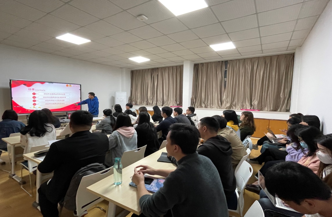 本网讯(文/图 薛永兰)3月30日晚,哲学马原研究生党支部在校出版社一楼开展以“聚焦两会·喜迎二十大”为主题的党日活动。此次活动由支部书记范敏主持,全体党员参加。