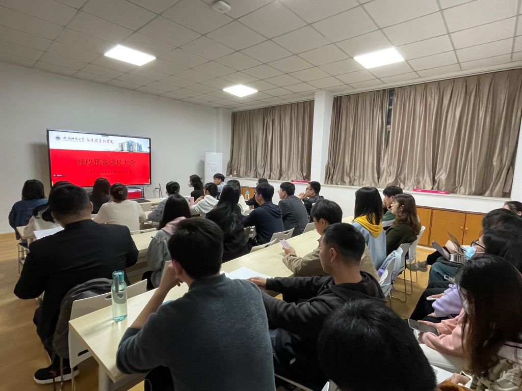 按照发展党员工作流程要求,李彩同志向大会汇报了自己在政治思想、学习情况、实践工作等方面的表现情况,也就入党动机、本人履历、家庭和主要社会关系情况作出说明。她的入党介绍人也分别介绍其相关情况,并对其能否入党发表意见。纪检委员张维欣代表支委会向大会报告了对李彩同志的审查情况,与会党员也对其能否入党进行充分讨论。讨论结束后,支部大会采取无记名投票的方式对李彩能否入党进行票决。投票结束后,支部书记范敏宣读支部大会决议,同意接收其为中共预备党员。支部按照上述流程也完成了接收钟志琦同志为预备党员的工作。