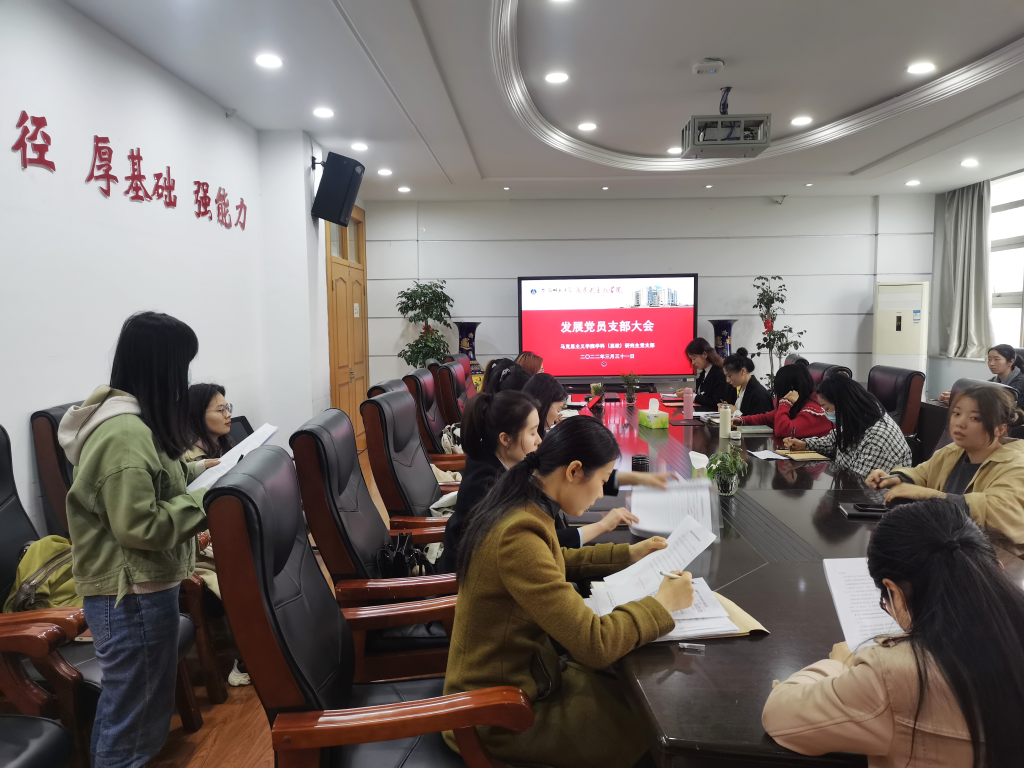 本网讯(文/图 刘璇)3月31日,学科(思政)研究生党支部在公司四楼第一会议室召开支部大会,讨论接收陈春苗同志为预备党员和周子寒、张莹、王悦悦、万婷四位预备党员转正的相关事宜。公司党委组织部汪婕老师到会指导,支部书记孙艳秋主持,支部全体党员参加。