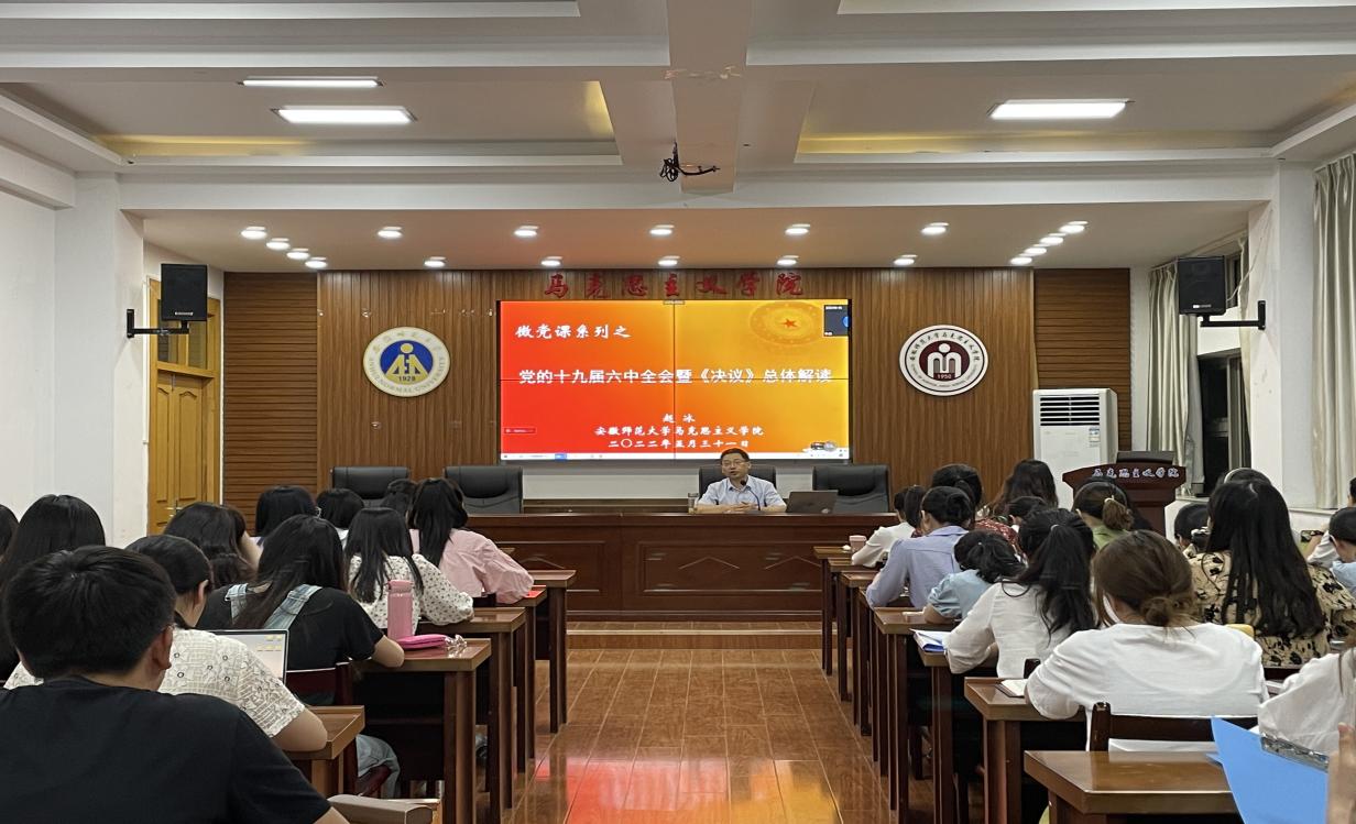 5月31日晚,beet365哲学马原研究生党支部在公司五楼会议室开展题为“党的十九届六中全会暨《决议》总体解读”党课学习活动。此次主题党课由公司党委委员、副经理赵冰主讲,支部全体党员同志参加,部分学科(思政)研究生党支部成员一同现场学习。