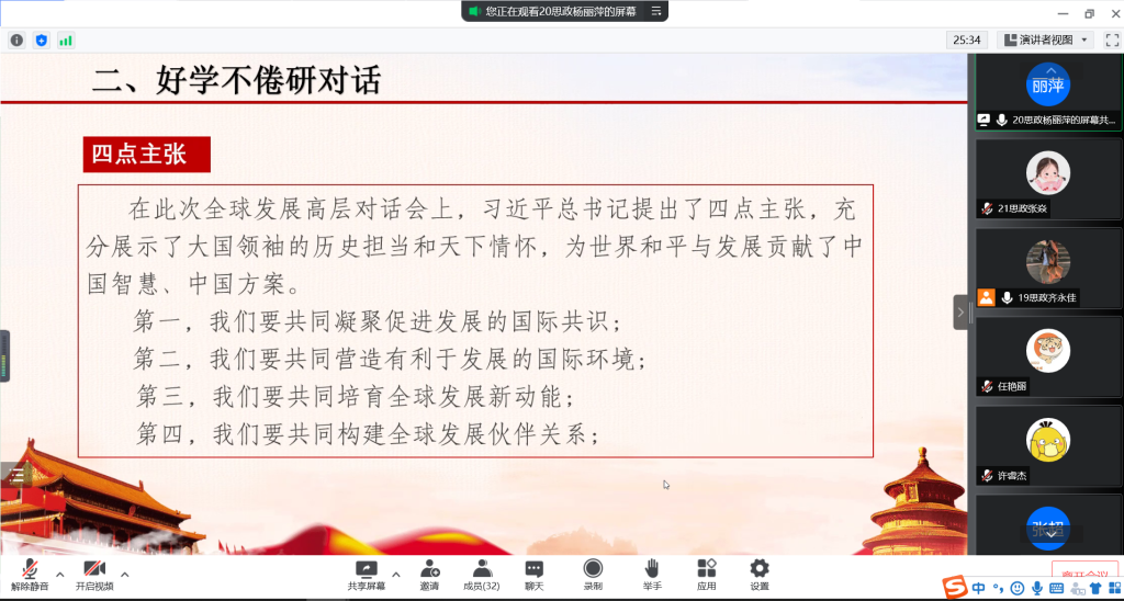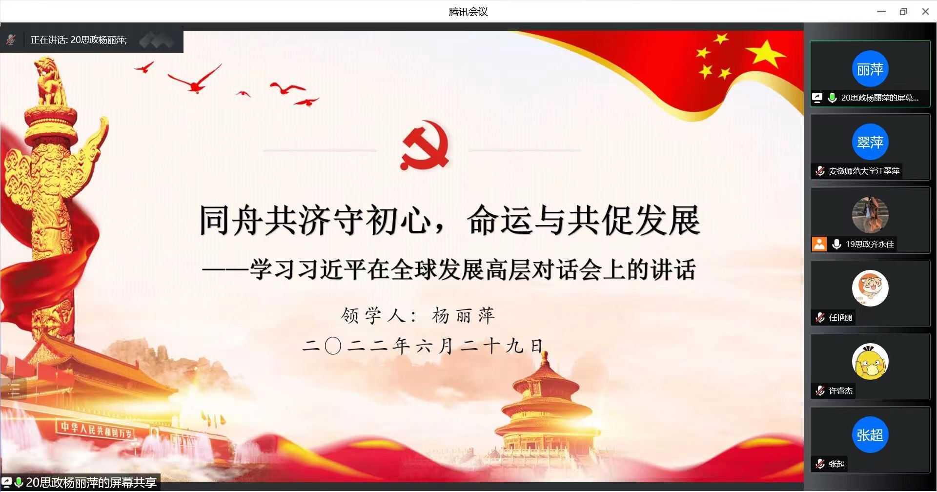 6月29日晚,beet365思政研究生党支部通过腾讯会议开展“同舟共济守初心,命运与共促发展”主题党日活动,旨在加强党史学习教育,感受习近平总书记强调的共建命运共同体的伟大愿景,培育支部党员的爱国主义精神,增进民族自豪感。此次会议由支部书记齐永佳主持,支部全体党员同志参加。