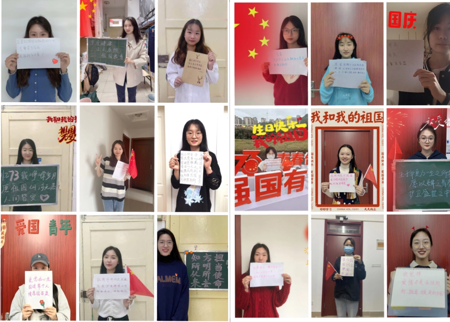 绵绵爱意,落笔生花。党员们通过合照的形式踊跃地分享自己为祖国母亲创作的三行诗:“五星红旗迎风飘扬的地方,是繁荣与富强,是信仰与力量”;“你有千年历史底蕴,你有万里锦绣山河,而我有你,我的祖国”;“欣逢盛世,当不负盛世。以我之浪花,筑国之巨浪。爱国始终是青春的底色”;“五千年文明是你的深度,九百六十万平方公里是你的广度,我对你的爱是无法企及的高度”;“峥嵘七十三载,历史长河见证您的伟大。青春二十余年,一腔热爱只为泱泱华夏。愿意以吾辈之青春捍卫这盛世之中华......”这一首首饱含深情的诗歌里寄托着支部党员们诚挚的祝福、真情的告白和爱国奋斗之志。