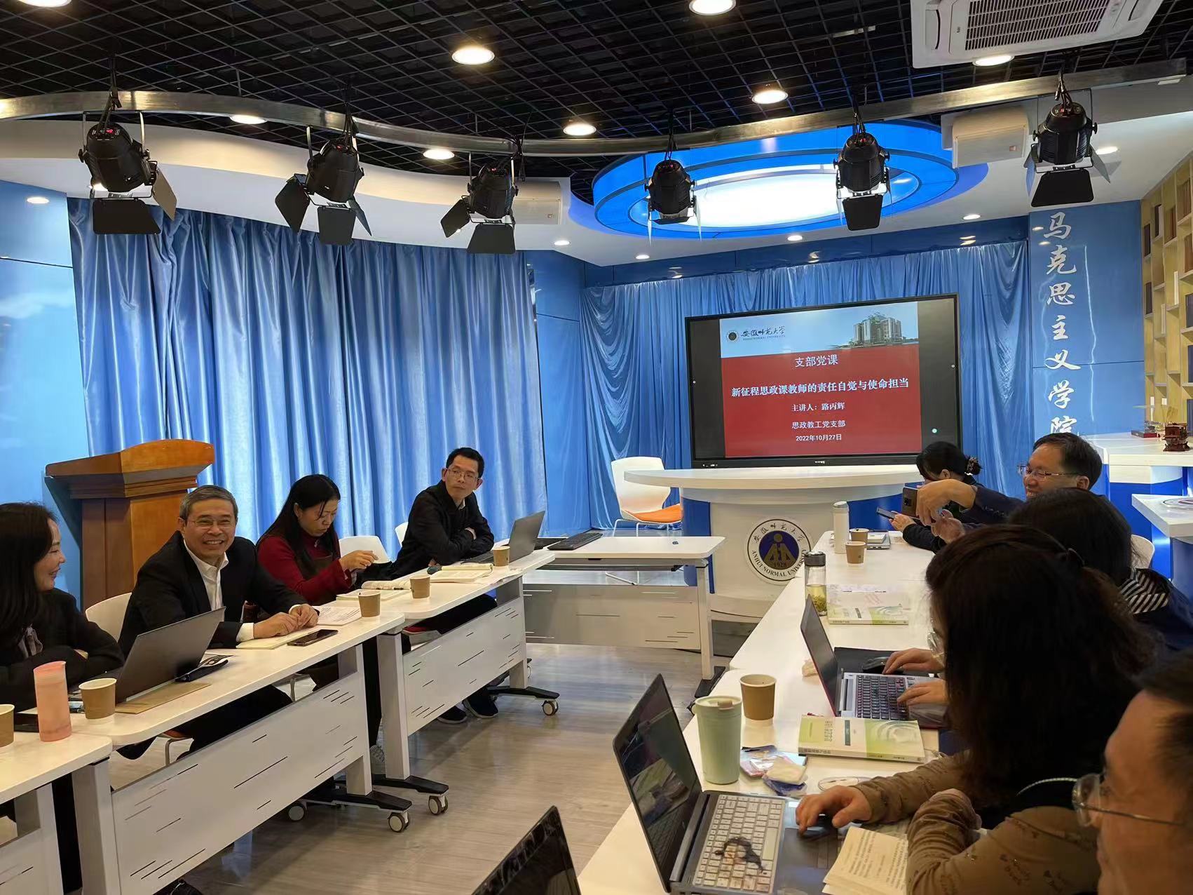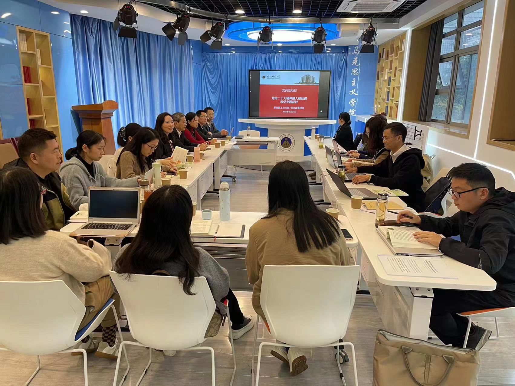 为更好学习领会贯彻党的二十大精神,将党的最新理论成果充分融入德法课教学,让党的二十大精神第一时间“带着热气”进教案、进课堂、进员工头脑,10月27日下午,思政教师党支部暨“思想道德与法治”课程组全体老师在公司二楼开展党的二十大精神融入德法课教学的党员活动日,党的二十大代表路丙辉教授讲授支部党课。会议由支部书记杨希主持。