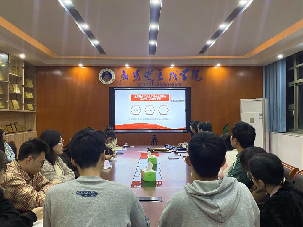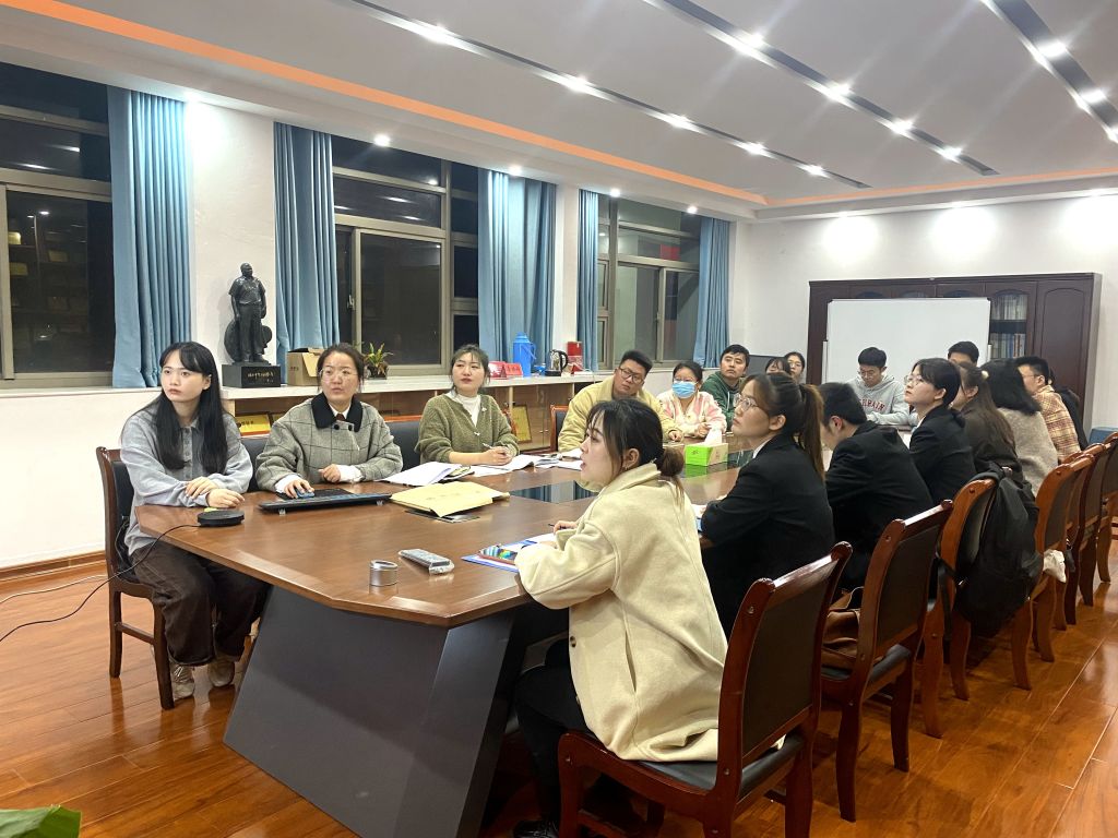 11月25日晚,党史近现代史研究生党支部在公司一楼展示厅开展“党的二十大报告中的新观点、新论断、新思想”主题党课学习活动。本次党课由支部书记陶娴静主讲,全体党员同志参加。