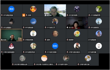 答辩会伊始,彭启福教授向各位老师和同学介绍了此次答辩的详细流程,并提出了相关的要求。接着,第一组参与预答辩的8名同学,分别就论文《<共产党宣言>中无产阶级历史使命思想研究》《南希·弗雷泽性别正义思想研究》《戴维·佩珀的生态社会主义思想及其当代反思》《“生命共同体”的生态文明意蕴研究》《马克思社会形态理论视域中“两个必然”思想研究》《论冯契对马克思主义价值理论的贡献》《自由时间的实现与人的全面发展》《<哥达纲领批判>中的马克思收入分配思想研究》,以PPT方式展示汇报,从各自论文的选题背景、框架结构、创新点及不足之处等方面进行了陈述汇报。随后,各位导师着重从论文的问题意识、行文逻辑、框架结构、观点依据、语言表述等方面进行了认真的评审,并向各位同学提出了具体的问题和详细的修改意见。最后,彭启福教授对今晚参与答辩的导师表示感谢,并希望8名答辩同学能够认真领悟老师们的教导,虚心听取老师们的建议,抓紧时间修改和完善论文,努力拿出更加优秀的学位论文作品。