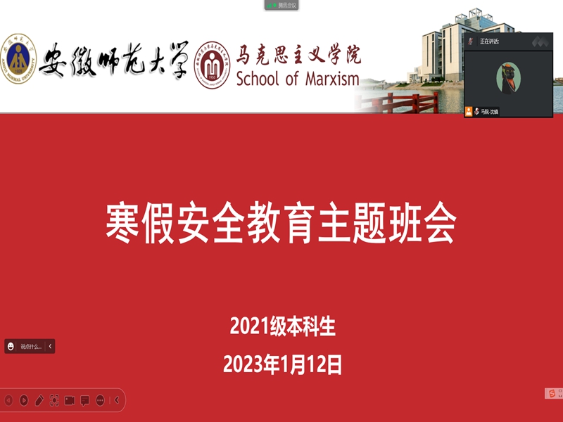 为切实增强同学们的安全防范意识,保障员工寒假安全,1月12日晚,公司2021级本科生通过腾讯会议召开了寒假安全教育线上主题班会。本次班会由公司2021级本科生辅导员沈镇老师主持,2021级本科生全体同学参加。