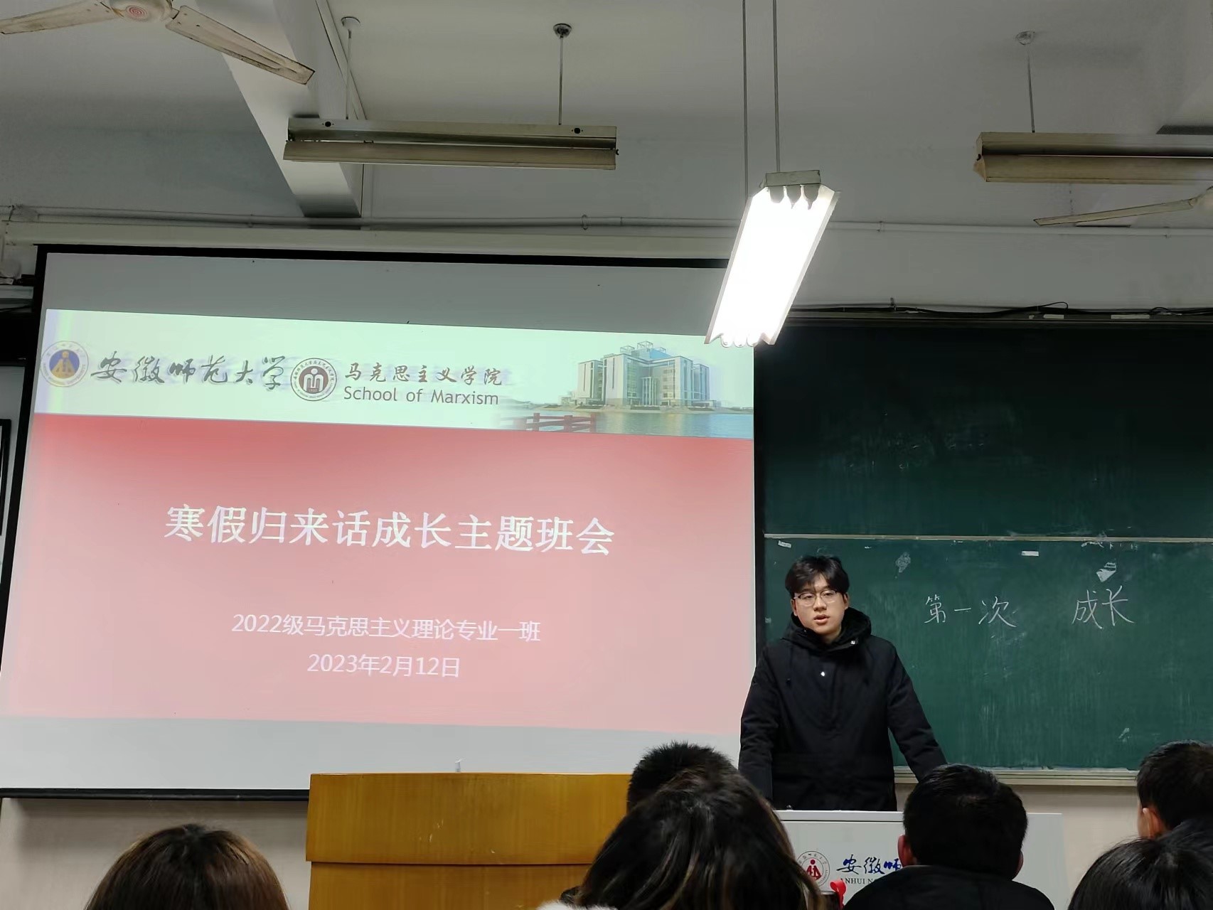做好分享,座谈承前启后。开学伊始,班级组织寒假归来话成长、开学第一课等主题班会。在开学第一课主题班会上,五位同学分别围绕自己的寒假生活、志愿服务和双创选题等话题,紧密围绕“爱国、团结、奋斗、科学、互助”五个关键词,分享青春践行党的二十大精神、立志成长为新时代好青年的思考与实践故事。分享会后,马克思主义理论专业负责人王子廓老师肯定了五位同学寒假期间所做出的成绩,并寄语同学们向着成为有理想、敢担当、能吃苦、肯奋斗的新时代好青年不断努力奋斗。班会上还布置了考试的相关事宜,通过强调考试纪律不断增强同学们维护beet365优良考风考纪的意识。