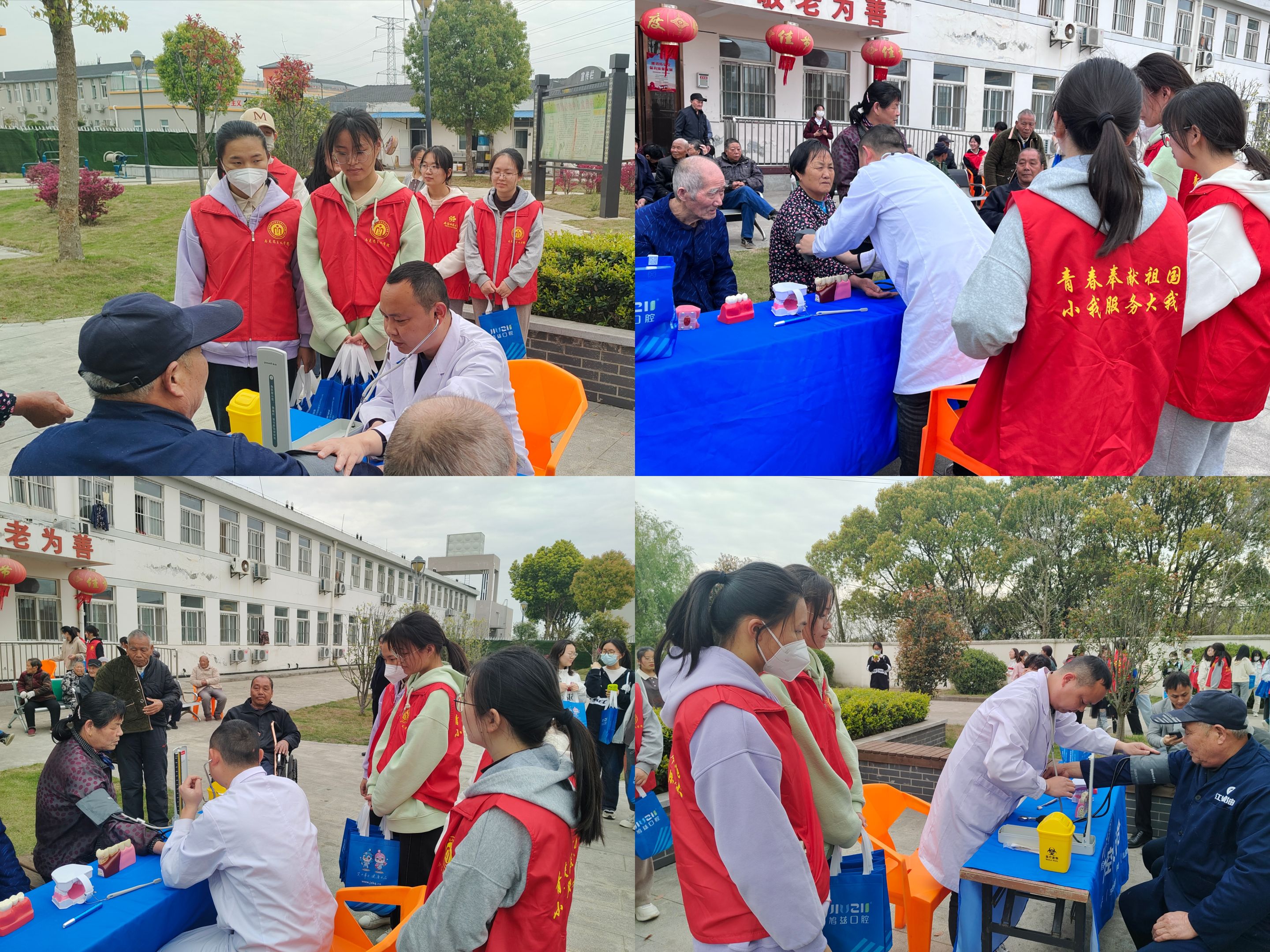 一次问诊现关怀。为维护老人的身体健康,表达对老人健康的关心,同学们跟随在义诊医生的身边,帮助老人进行身体检查并学习义诊知识。在义诊过程中,同学们的爱心和义诊医生的奉献交织在一起,温暖了老人,也带来了健康。