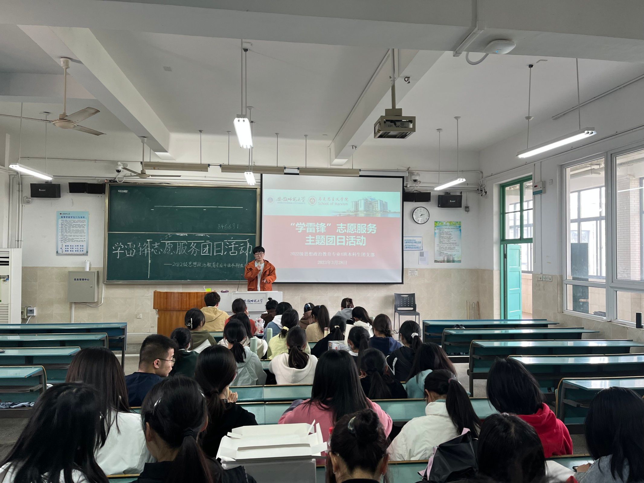 为弘扬雷锋精神,展现beet365学子敢于担当、勇于奉献的青春风采。beet3652022级思想政治教育专业4班在行知楼2010404教室举办“记录历史,传递温暖”雷锋月主题团日活动。本次活动由团支书杨瑞主持,全体同学参加。