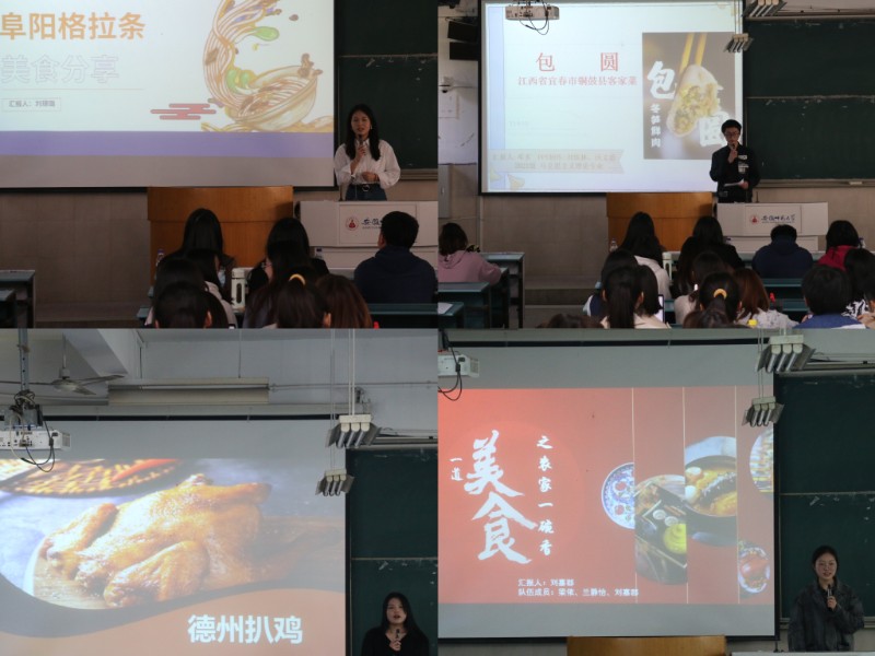 团队代表以演示文稿配合演讲解说的形式上台展示。演讲者用自己独特的方式向评委和观众们介绍心中的“家乡味道”。一方水土一方人,一方厨艺天下闻。山东潍坊名吃鸡鸭和乐面、浙江特色东坡肉和衢州鱼头、江西铜鼓县客家菜包圆,河南安阳扁粉菜、赣南黄元米果,还有安徽巢湖银鱼蒸蛋、宁国粑粑、绩溪一品锅、阜阳格拉条......一道道满含深情的家乡菜肴展现了各地相异的风土人情。经过激烈比拼,共评选出一等奖5组,二等奖8组,三等奖16组。