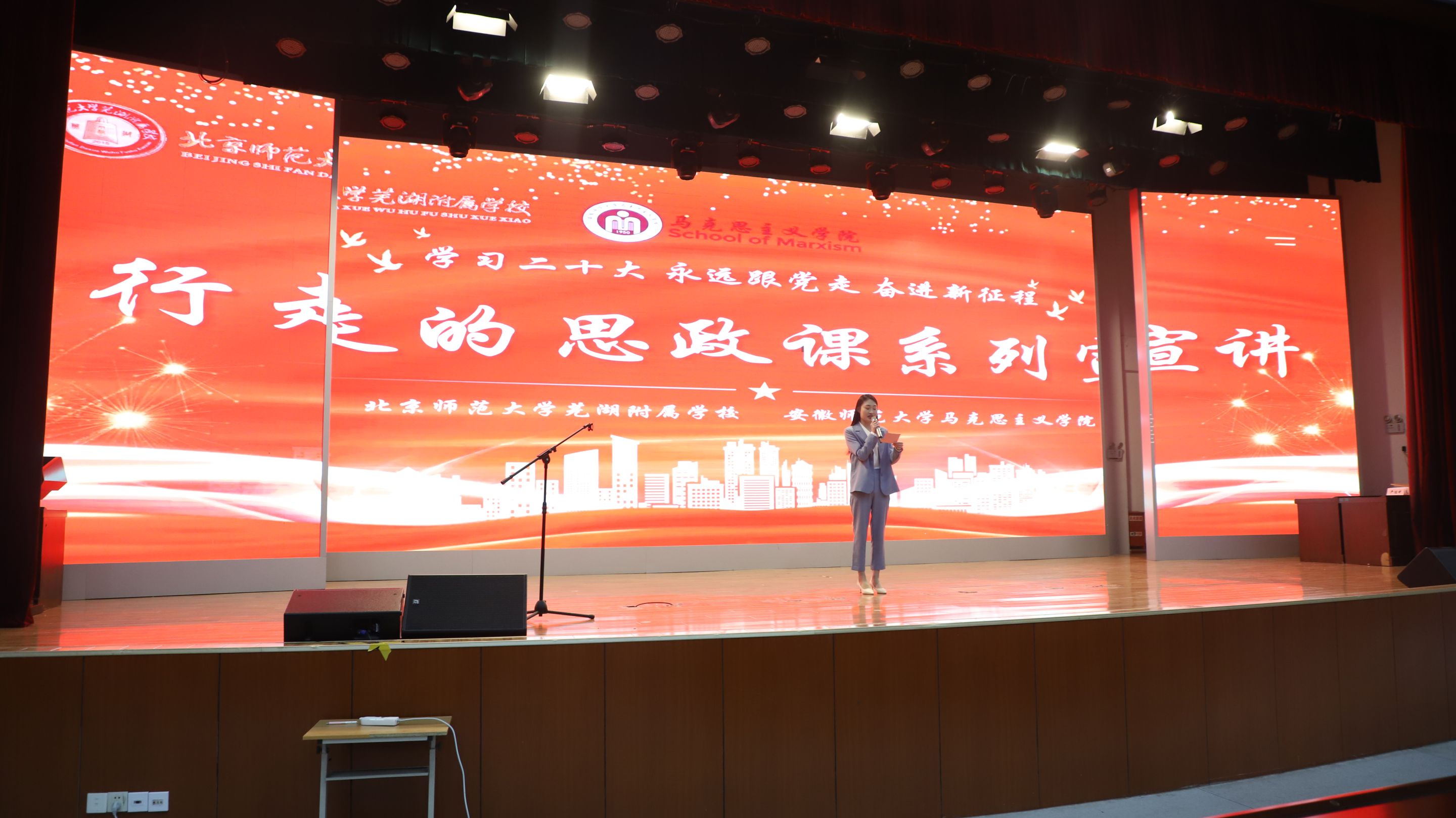 “百年前,一群平均年龄只有28岁的中国青年相聚于嘉兴,在南湖的小船上点燃了一盏明灯,微弱的光亮照亮了古老国度的寂寂沉夜。”宣讲员的深情讲述将台下600余名高中生带上了嘉兴南湖缓缓驶出的小船上。4月7日下午,一场特别的理论宣讲在北京师范大学芜湖附属公司引发热烈反响。当中国共产党百年征程、党的二十大精神融于一个个鲜活故事,当举世瞩目的成就化为一段段峥嵘岁月,身在现场如同穿越时空,爱党爱国情激荡满怀。