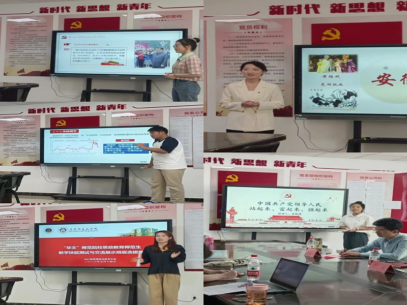 5月14日下午,“华文”教学技能测试与交流展示班级选拔赛在公司二楼本科生党支部举行。2021级本科生辅导员沈镇和2019级黄博文担任评委,共有六名选手参与现场比拼。