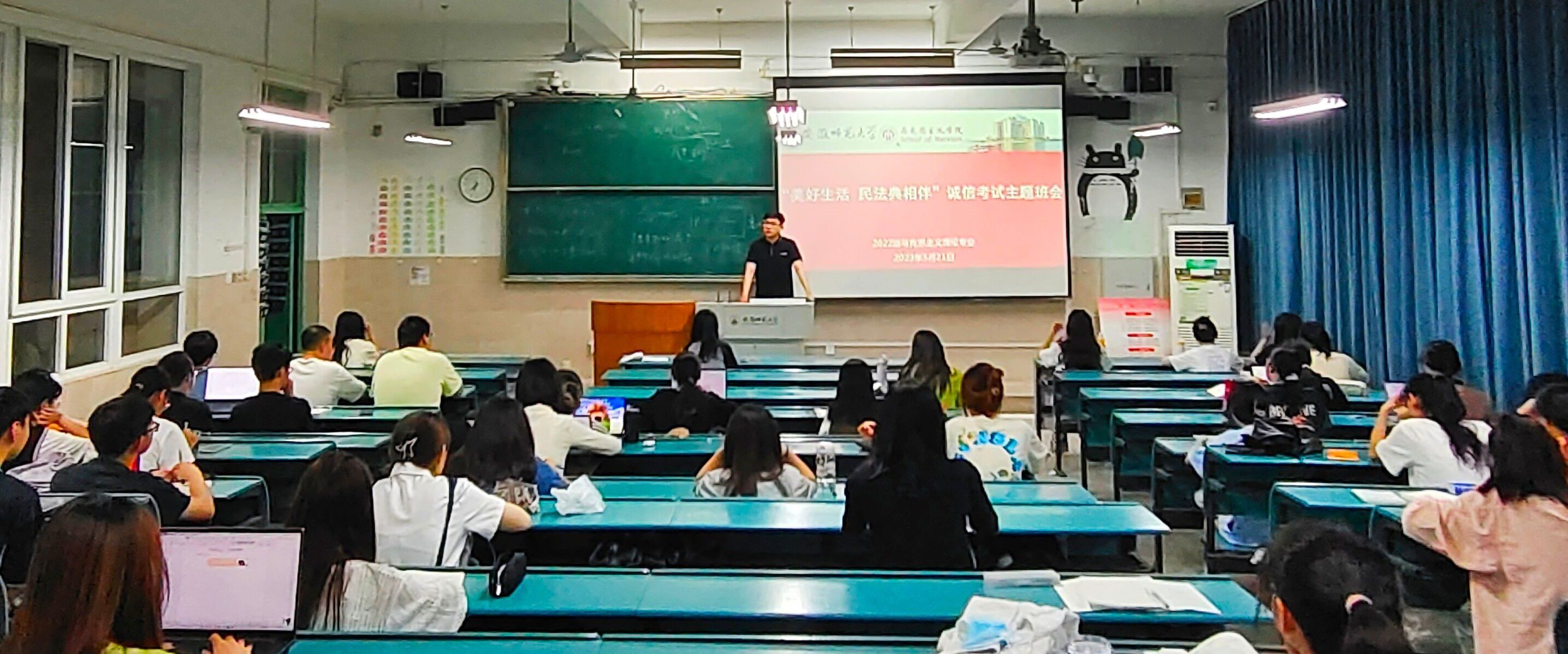 为强化全体同学诚信考试意识,5月21日晚,2022级马克思主义理论一班于行知楼2020303教室召开“美好生活 民法典相伴”诚信考试主题班会。本次班会由辅导员季行健主持,2022级马克思主义理论一班全体同学参加。