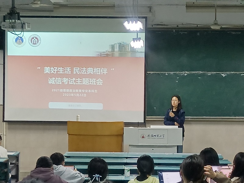 为引导员工学习征信知识、法律知识,以学增智,增强员工诚信意识,形成良好的诚信之风,端正考试态度,5月22日晚,公司2021级思想政治教育专业三班召开“美好生活 民法典相伴”诚信考试暨资助诚信教育主题班会。本次班会由班长孙宇馨主持,三班全体同学参加。
