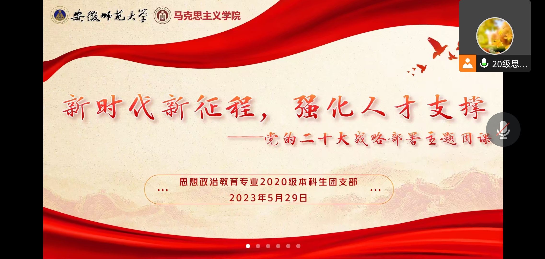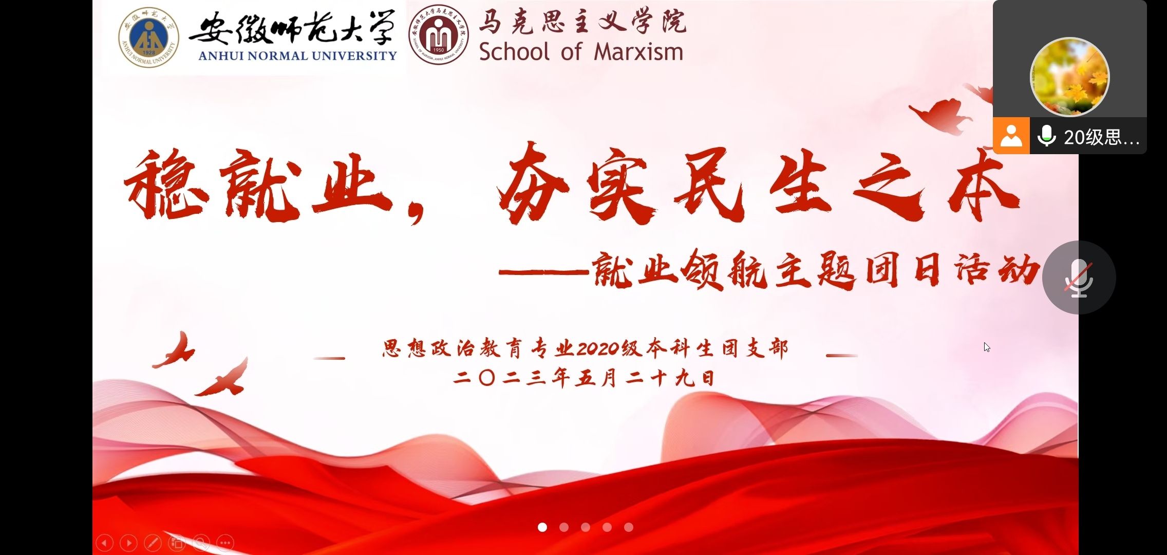 5月29日晚,2020级思想政治教育专业本科生团支部于线上举办系列主题团日活动。系列团日活动由周勤松主讲,班级全体成员参加。