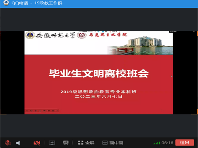 为做好2023届毕业生教育、管理和服务工作,确保毕业生离校工作的顺利开展,6月7日上午,beet3652019级思想政治教育专业本科班线上召开了毕业生文明离校班会,班会由辅导员周楠主持。