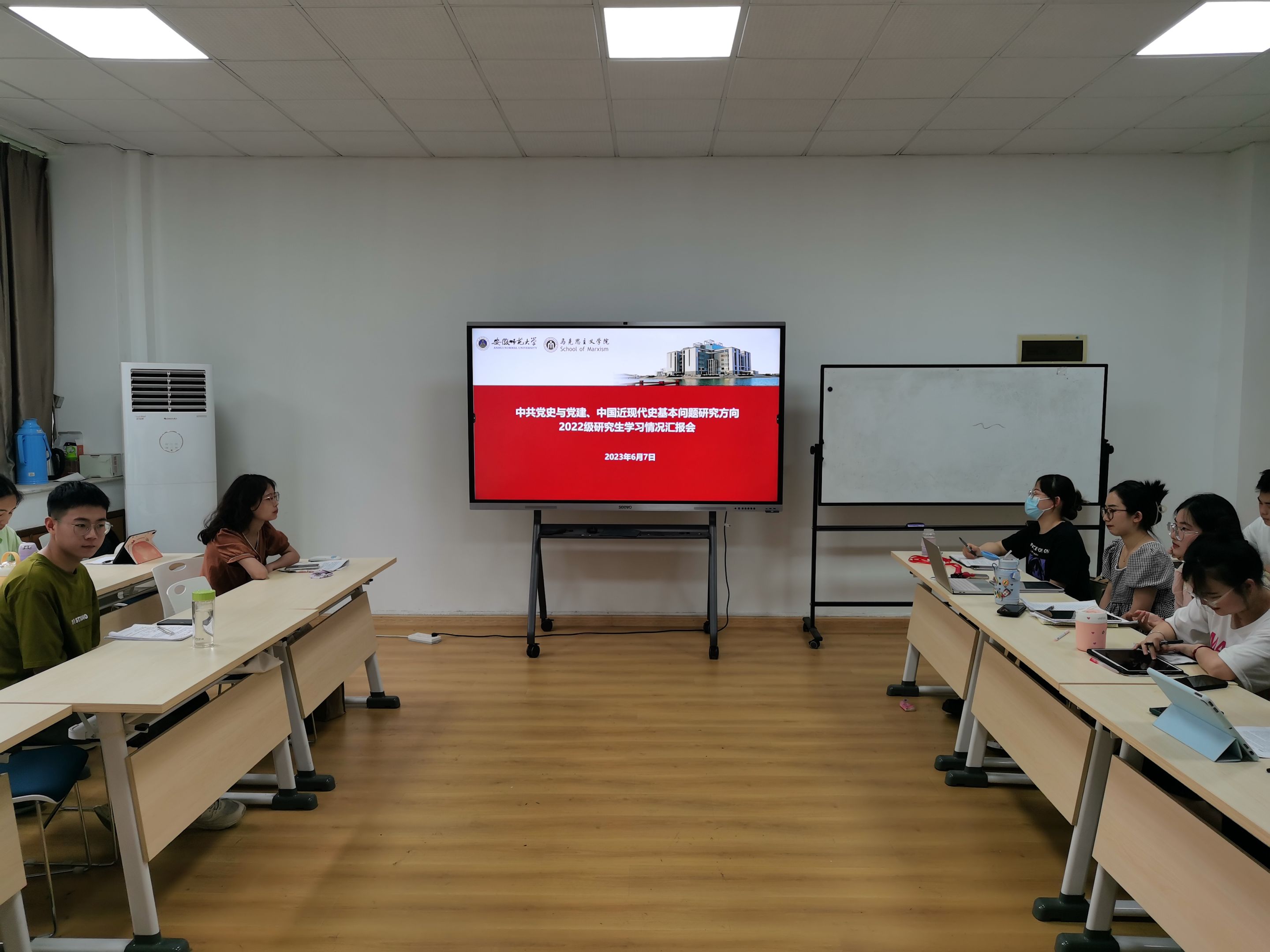 6月7日下午,中共党史与党建、中国近现代史基本问题研究硕士学位点党史教工支部107会议室召开2022级研究生学习情况汇报会。本次汇报会由孙亮副教授主持,研究生导师章征科教授、崔明海副教授、王瀛培副教授参加会议。