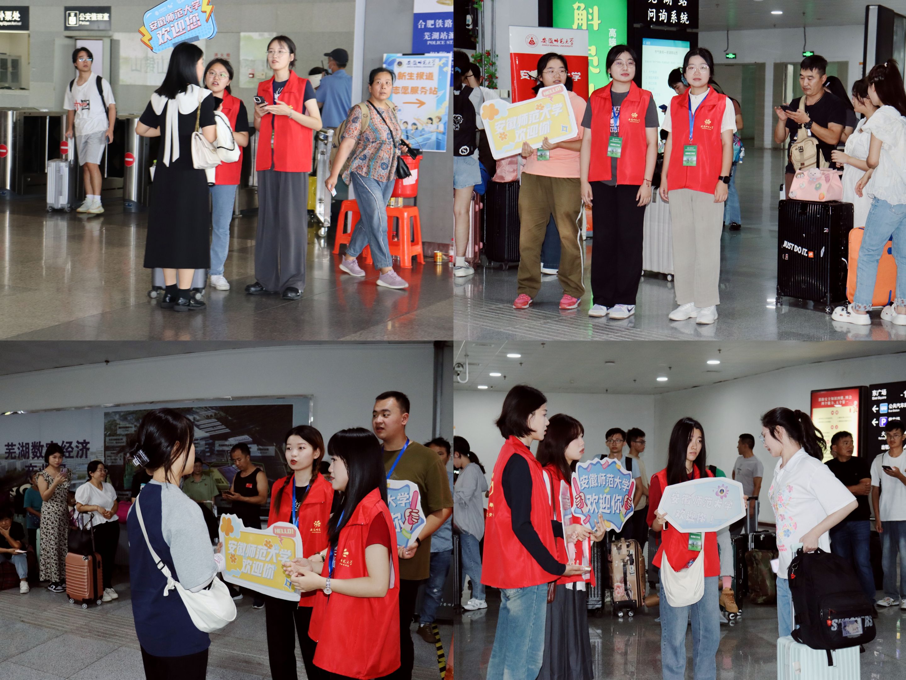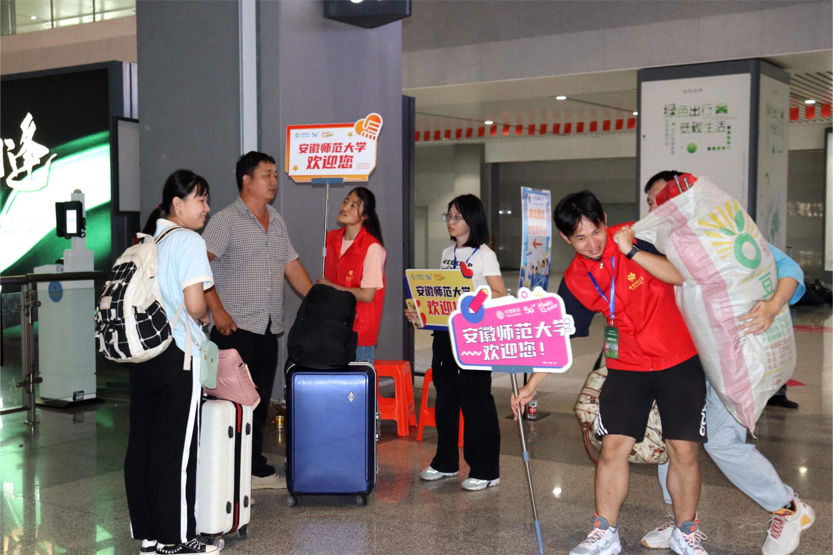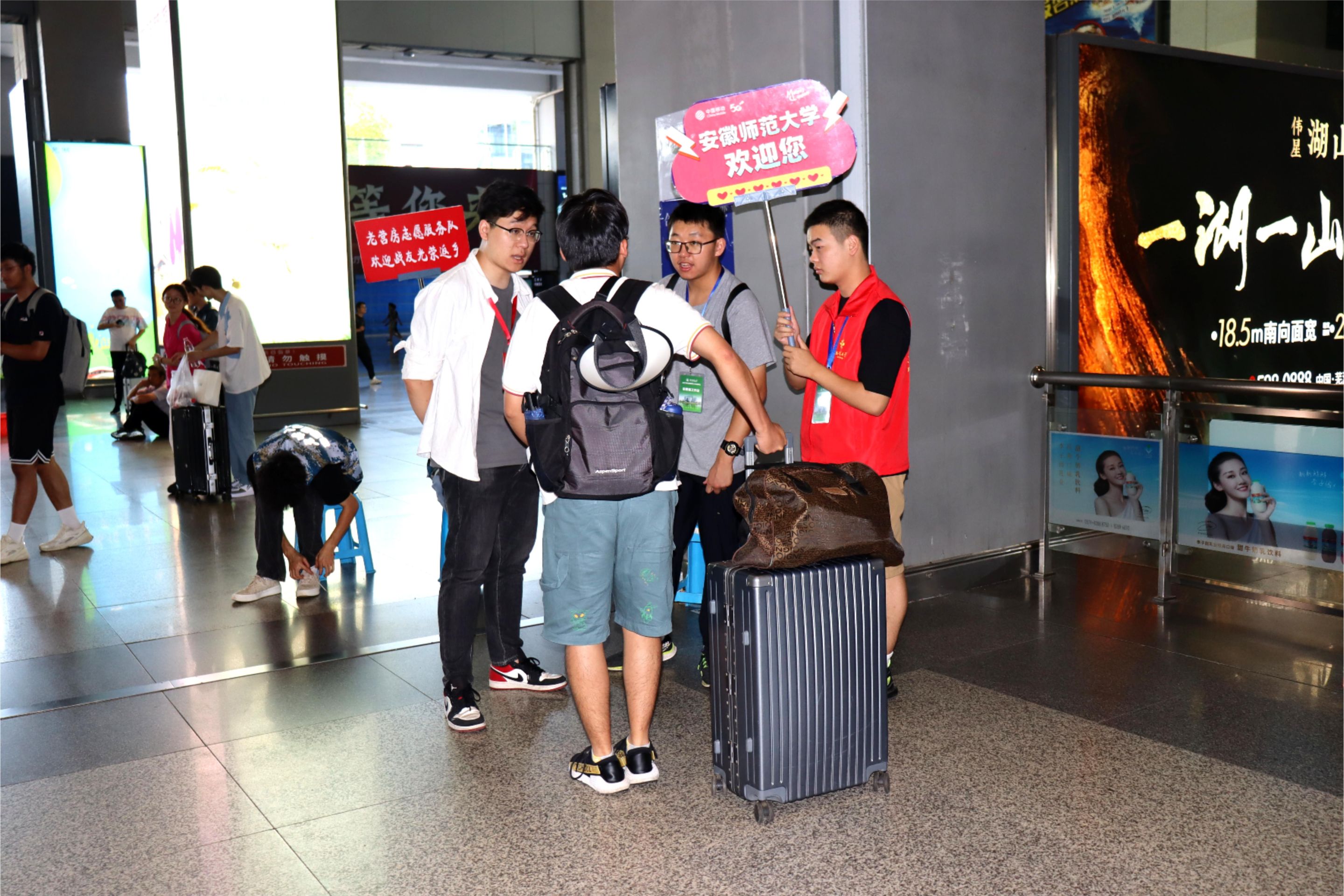志愿队伍整齐着装,统一挂牌,来到火车站指定地点。引导组的志愿者们在出站口高举标示“beet365官方网站”的牌子,迎接每一位前来公司报到的员工。总服务台的志愿者们耐心地为新生答疑解惑,让他们感受到互助有爱的师大氛围。校区接待处的志愿者们与总服务台志愿者们相互配合,将新生和家长引导至各自校区等候点,并组织新生统一乘车。忙碌的红色身影构成了芜湖火车站最靓丽的风景,也在新生的心中树立了不怕苦不怕累、敢于担当、勇于奉献的“师大人形象”。