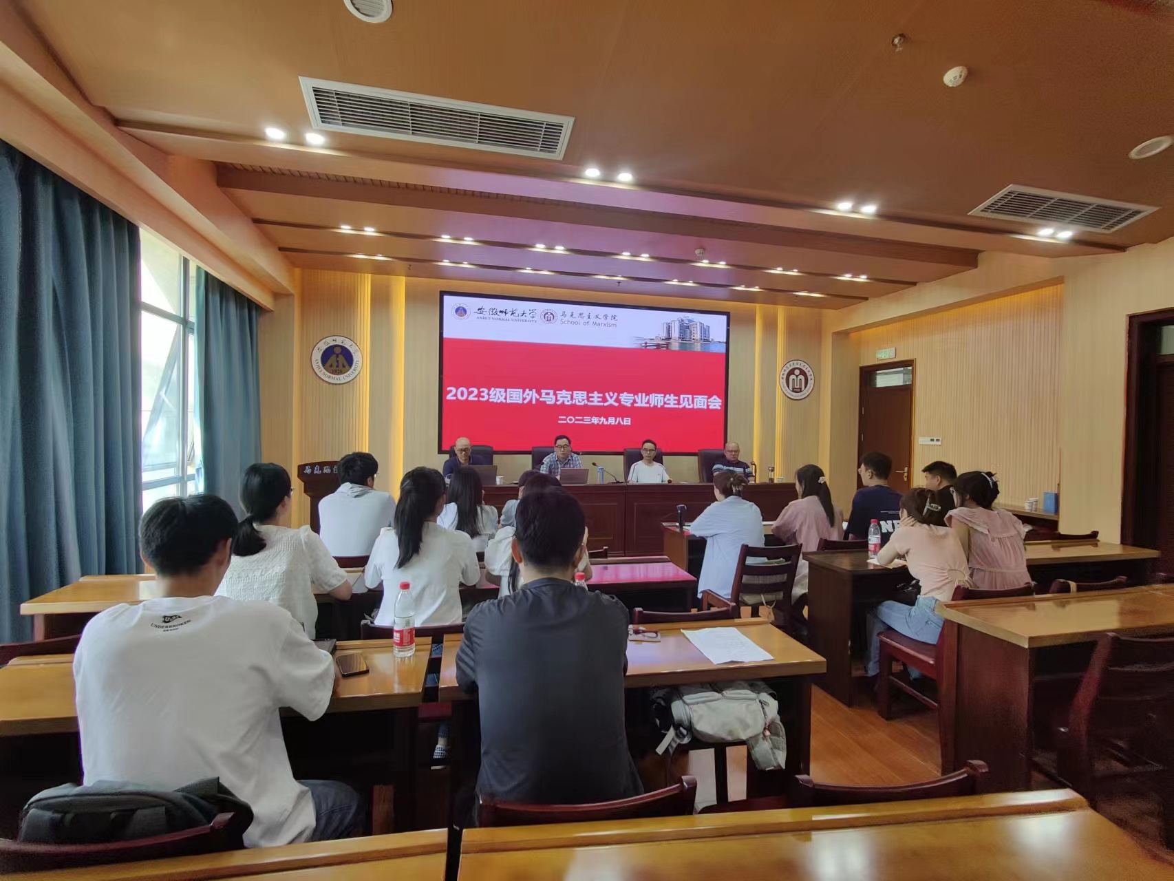 9月8日,国外马克思主义硕士点举行2023级新生导师见面会。会议由国外马克思主义硕士点负责人单传友主持,宣庆坤、陈旭东、张添翼等3位导师应邀出席,学位点2023级新生、2021级和2022级老生参加了会议。