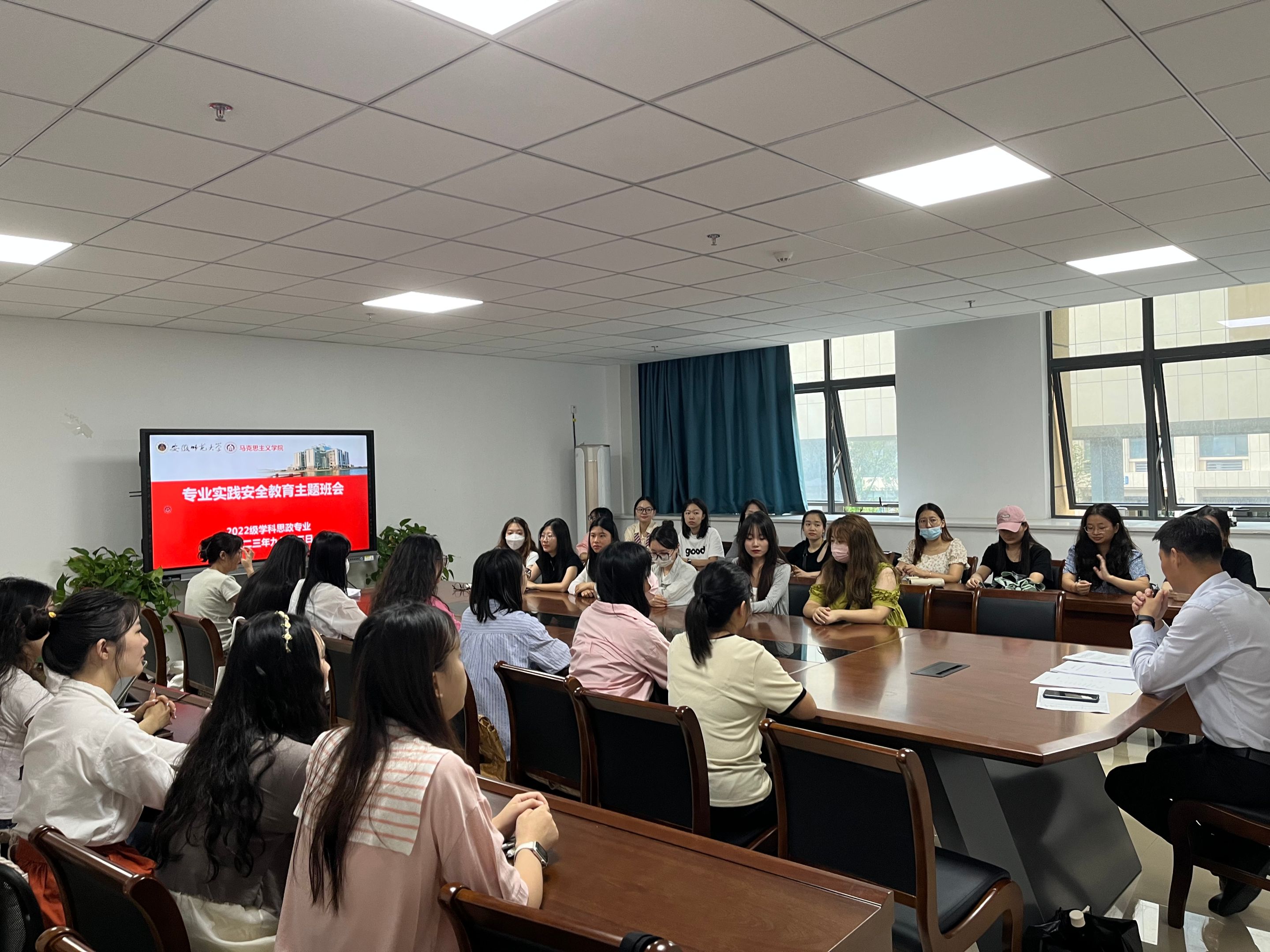 实践教学是专业学位研究生的重要培养环节。为做好我院2022级全日制专业学位硕士研究生实践教学工作,9月13日上午,2022级学科思政专业在公司G211会议室召开专业实践安全教育主题班会。班会由辅导员夏盼盼主持,2022级学科思政专业同学参加。