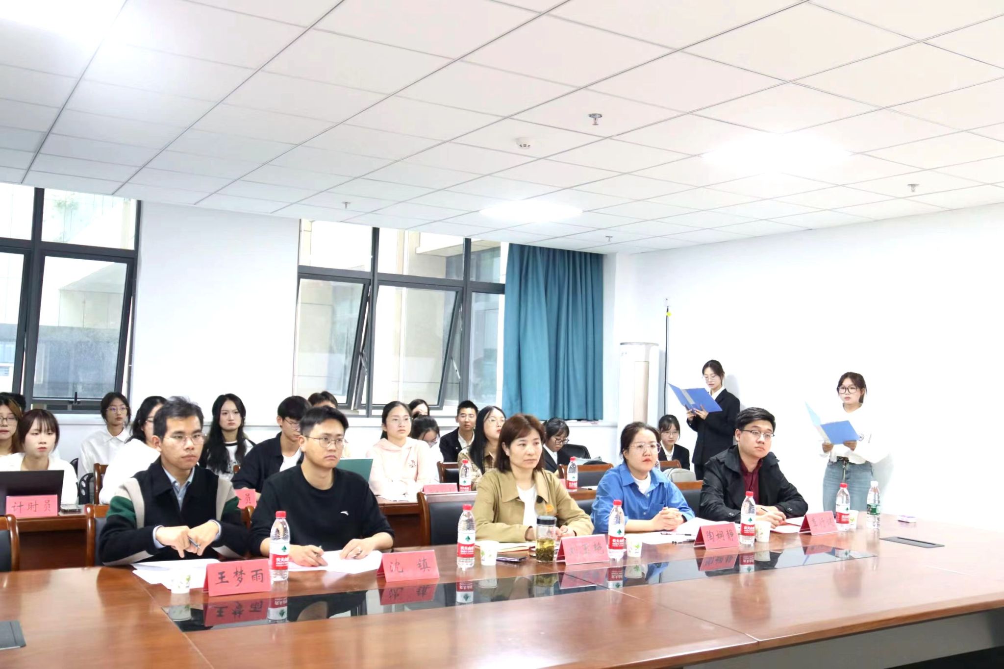 刘玉艳总结发言。她肯定了答辩人的表现,并希望同学们在生活中做一个“暖心”的人,在学习上做一个“有心”的人,在工作上做一个“尽心”的人,时时刻刻发挥榜样作用,有目标有规划的完成老员工活。