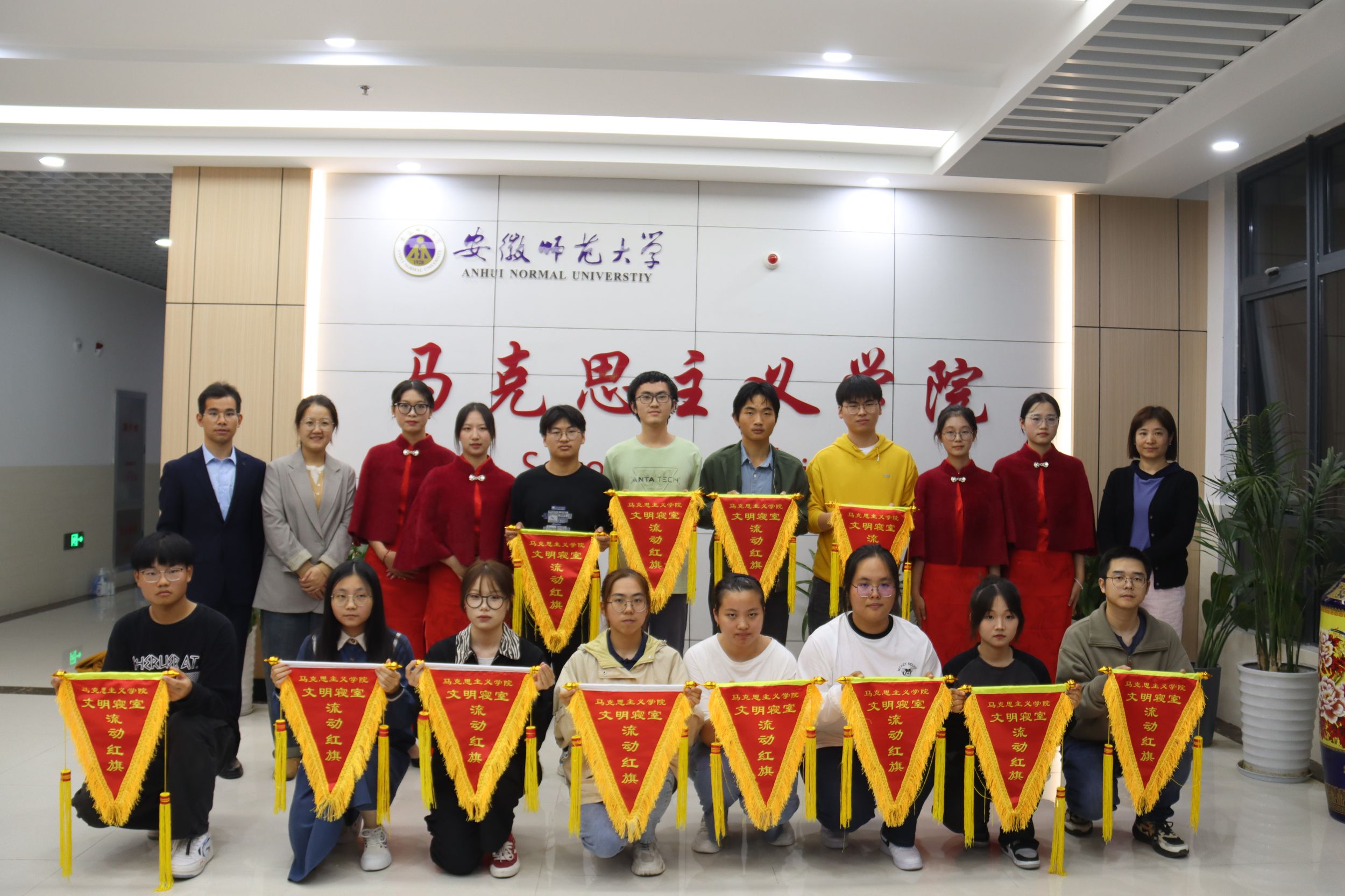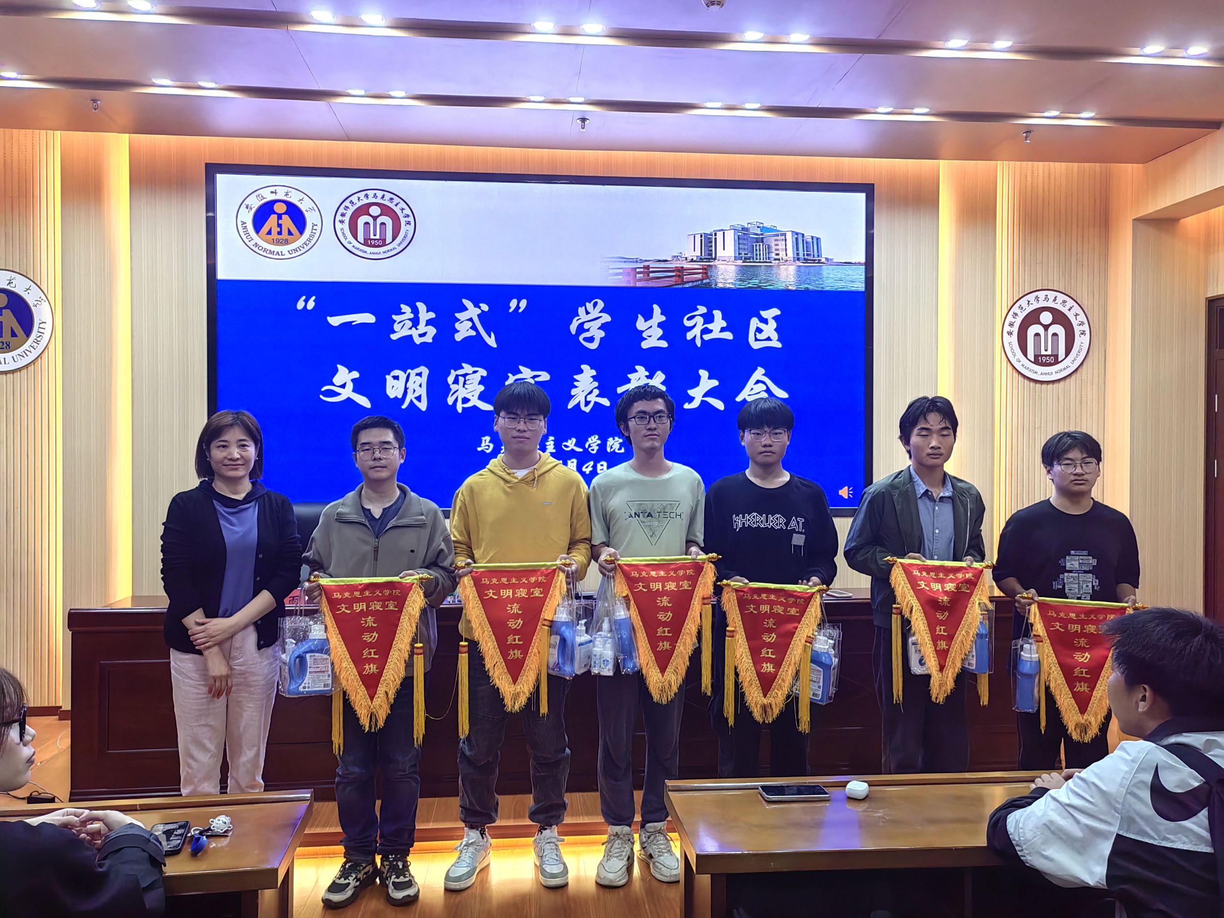 会上,王梦雨从寝室安全、寝室环境卫生、寝室文明等方面解读了文明寝室评选细则。陶娴静宣布了10月份文明寝室名单。21级思想政治教育曹祥惠作为文明寝室代表发言,她分享了文明寝室的标准和具体做法,呼吁各寝室建好沟通的平台,共同发造宿舍“家”文化。