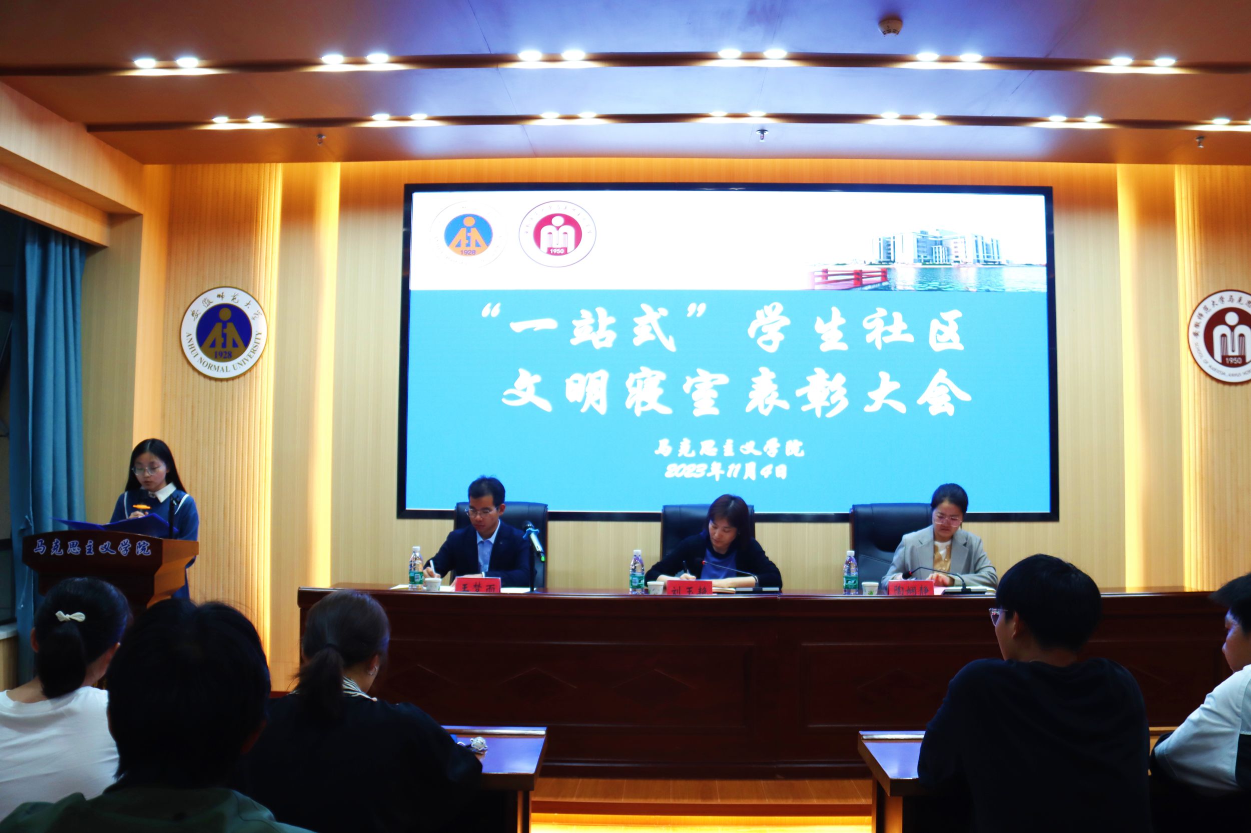 为推进“一站式”员工社区建设,营造整洁优美的宿舍氛围。11月4日下午,beet365在文典楼108报告厅开展“一站式”员工社区文明寝室表彰大会,公司党委副书记刘玉艳、团委书记陶娴静、2023级本科生辅导员王梦雨出席会议。会议由丁赢主持,各年级寝室长代表参加。
