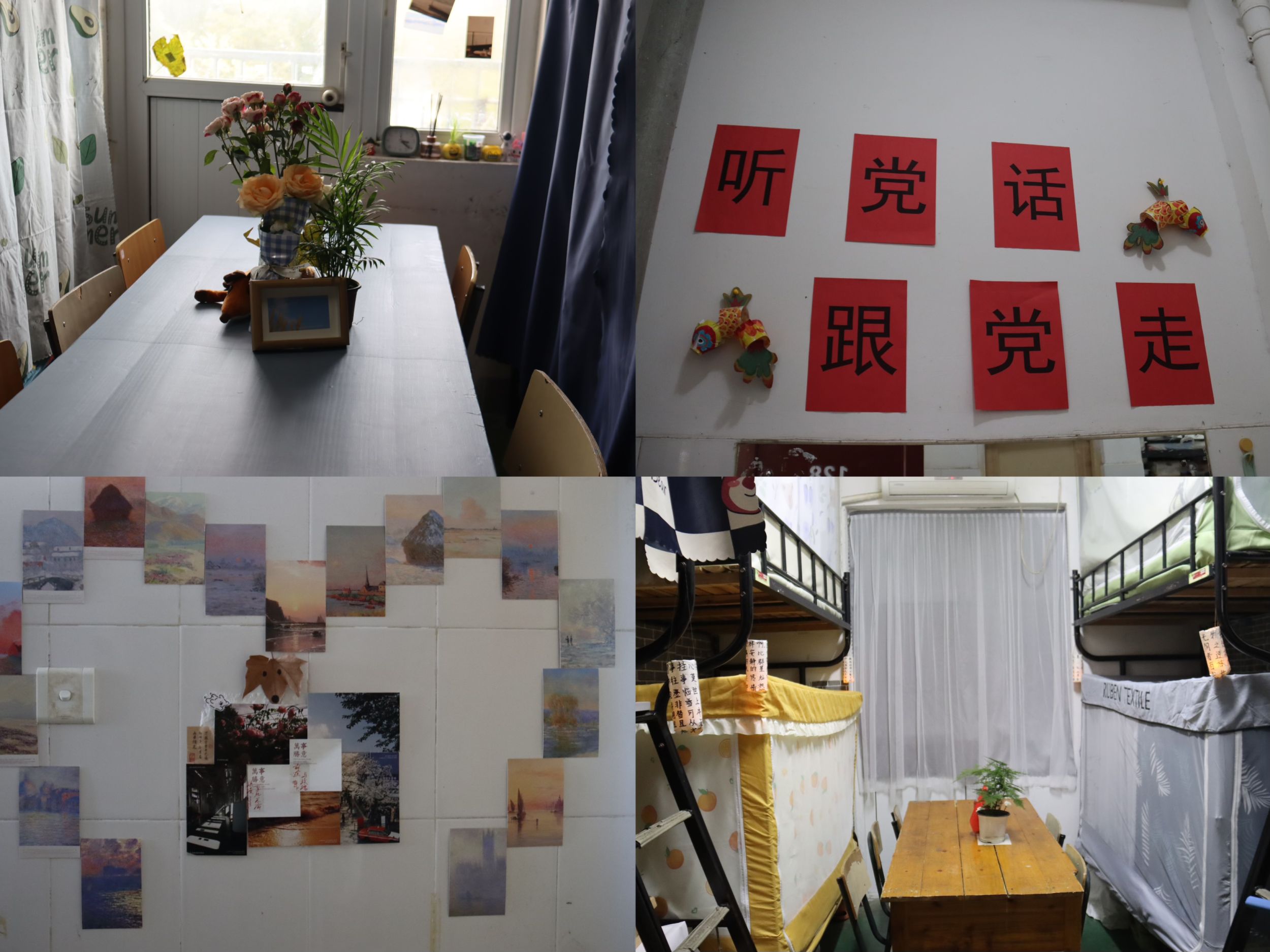 本次比赛以“和而不同,美美与共”为主题,共分为寝室命名设计、寝室整体设计和寝室设计解说三个部分。公司2023级新生积极参与,认真准备。各参赛寝室构思巧妙,装扮风格多样。“德馨室”、“清风阁”、“德如一室”等寝室的命名让人眼前一亮。这些寝室内部的装饰更是别出心裁,寝室的主人将水墨书法融入寝室,增添古风古韵,打造中国风式宿舍。小小的空间既可以融入东方美学也可以简约温馨。寝室是大家共同生活的家园,宿舍成员在点点滴滴中记录集体生活,照片墙上留下了彼此共同的回忆。充满温情的门牌设置,精心呵护的绿色盆栽和灵动活泼的宿舍涂鸦等独特的设计都展现出参赛者的用心。在评比的过程中,寝室设计解说员细致地讲解了本寝室的设计风格与理念,并与评委们热情交流。
