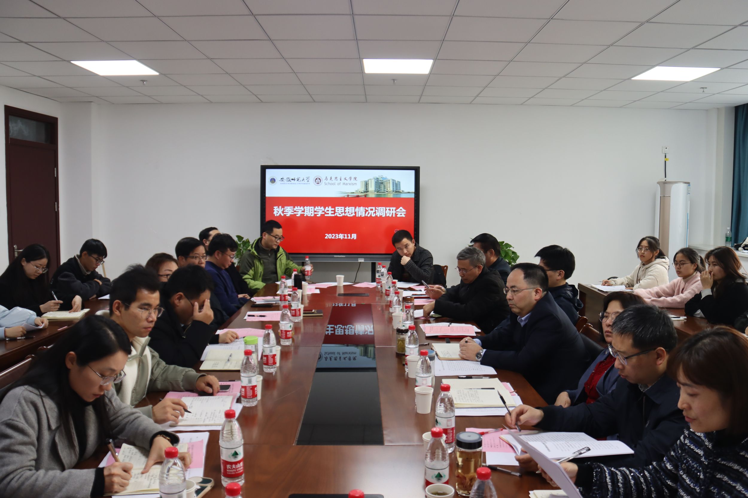 11月15日下午,beet365在二楼会议室召开秋季员工思想调研会暨期中教学检查座谈会。院领导班子成员、教师代表、全体辅导员和各年级员工代表参加会议。会议由公司党委书记严宏主持。