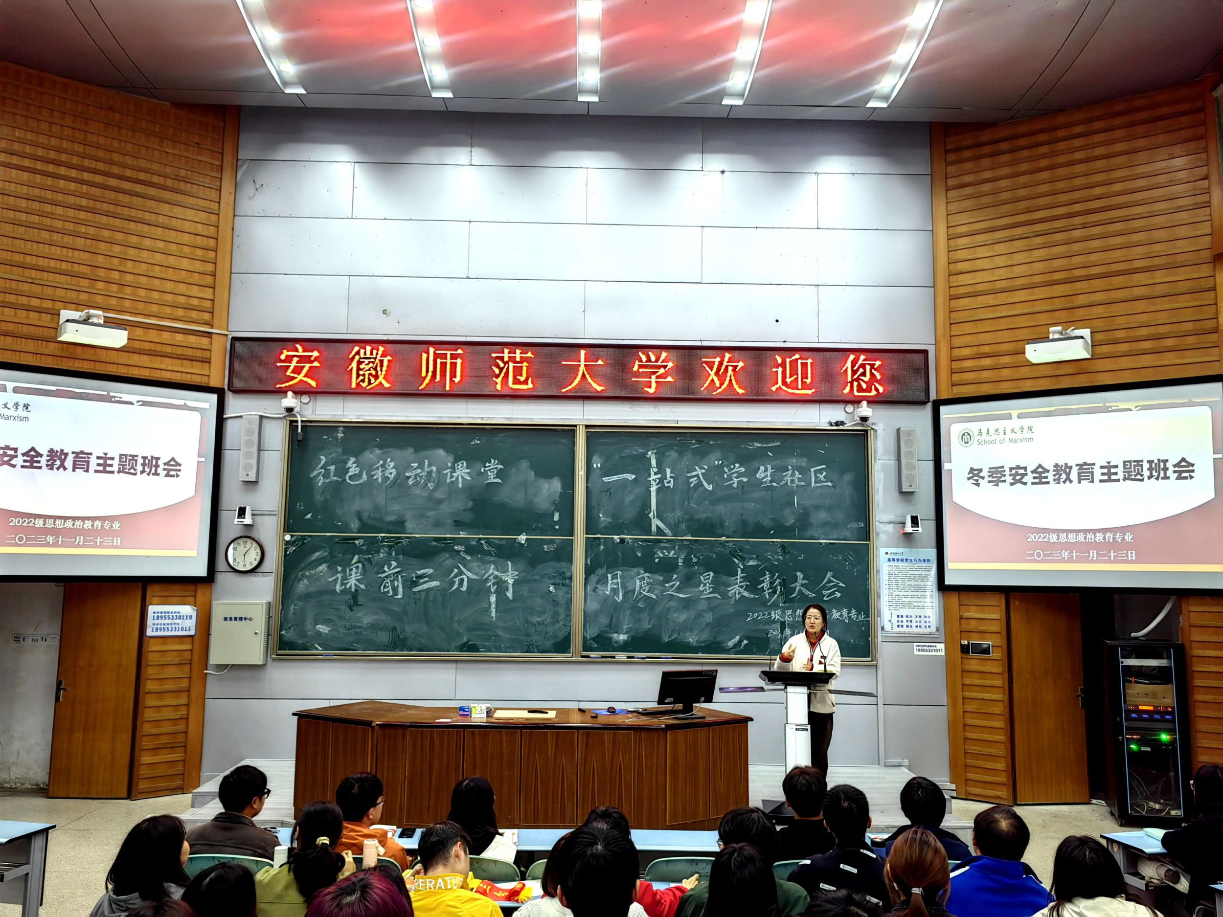为进一步强化员工安全防范意识、规范员工安全行为,11月23日晚,公司2022级思想政治教育专业在行知楼2010105教室开展冬季安全教育主题班会,会议由辅导员陶娴静主持,全体同学参加。