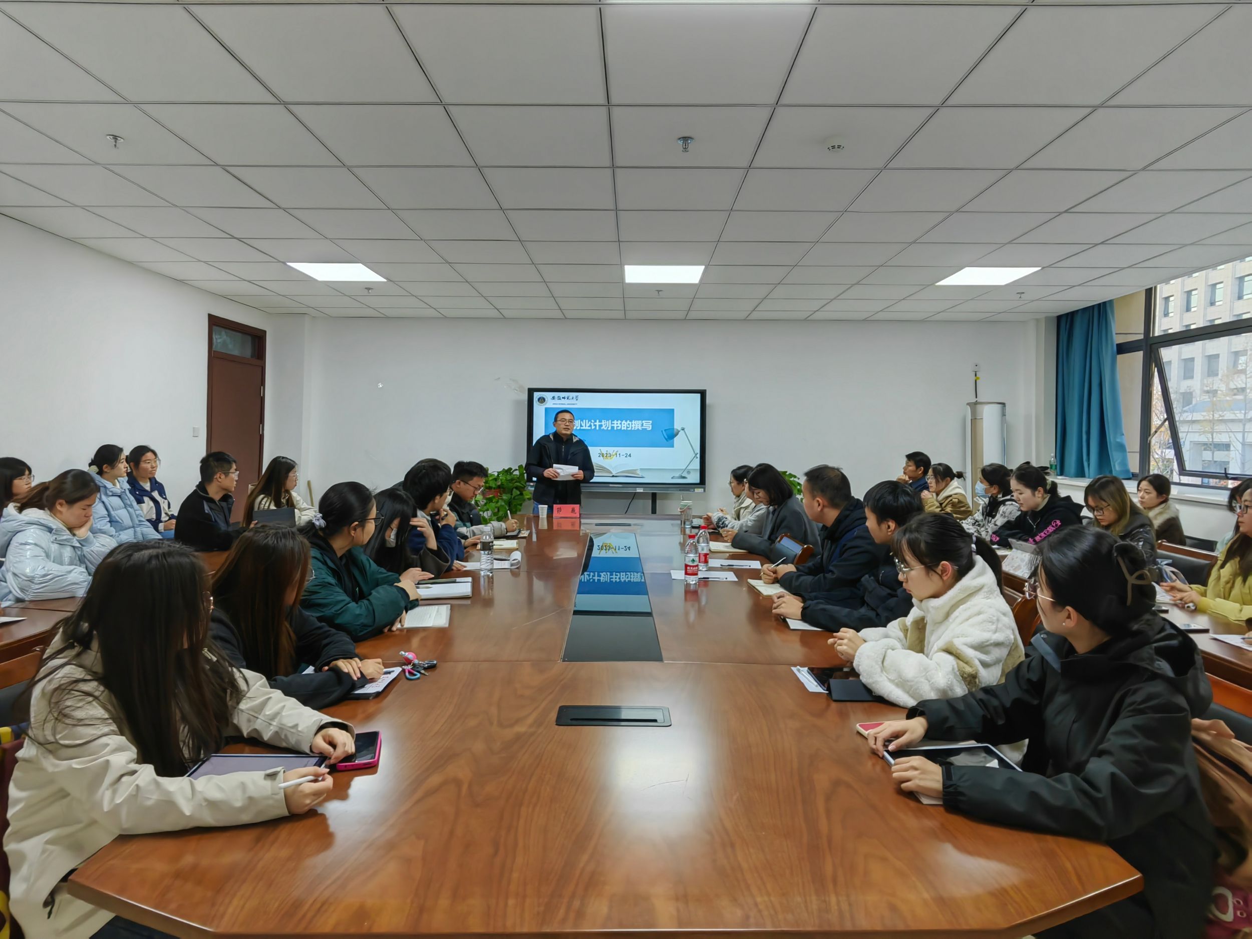 11月24日下午,公司特邀茆巍老师于文典楼G211会议室举办第十一届“挑战杯”老员工创业计划竞赛培训会,会议由辅导员夏盼盼主持,各参赛团队员工代表参加。
