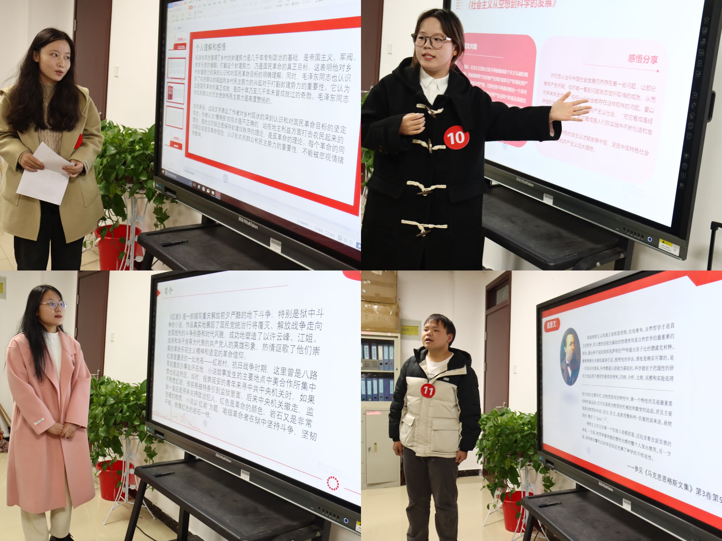 比赛结束后,评委老师进行点评,他们在肯定选手表现的同时指出选手存在的不足,他们希望选手们要加强对文章本质内容的把握;要深入了解文章的写作背景、写作目的和写作方法;要将马克思主义基本原理同生活实践相结合,真切感悟文本内容。