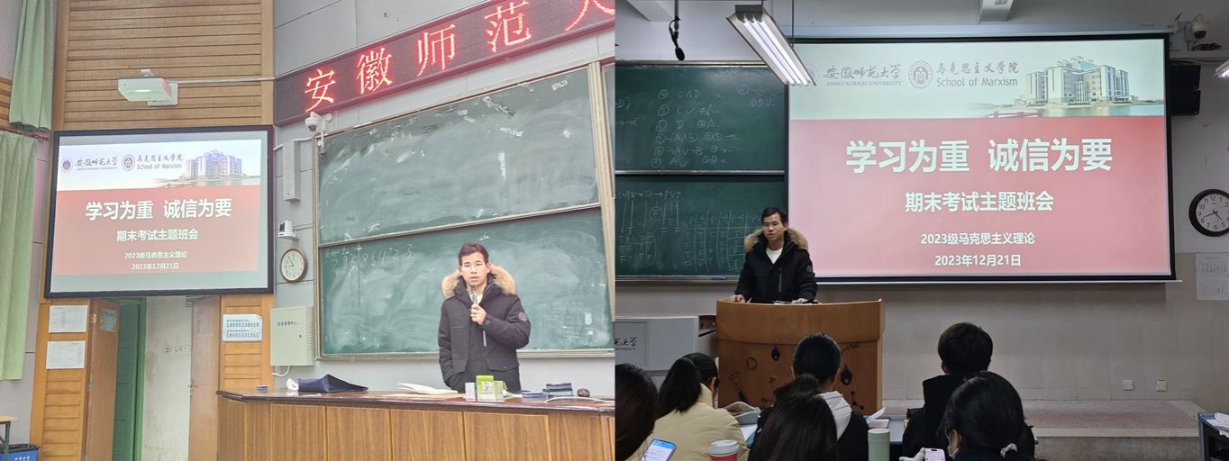 为培养员工诚信考试意识,端正学习和考试态度,弘扬诚信美德,beet3652023级思想政治教育专业和马克思主义理论专业分别于12月21日在2010105和2030103教室举行“学习为重,诚信为要”期末考试主题班会,此次班会由辅导员王梦雨主持。