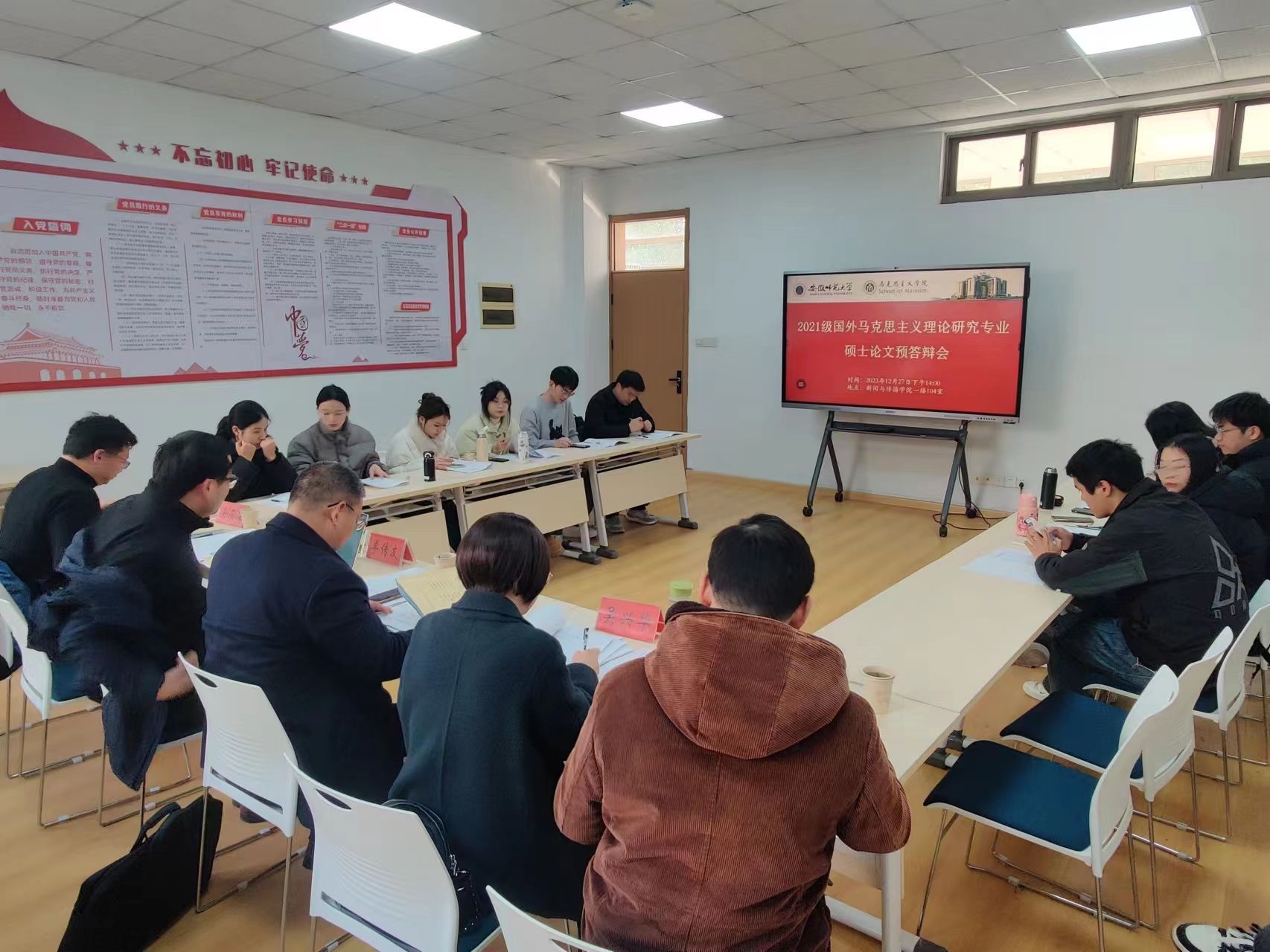 为进一步加强研究生学位论文的过程管理,提升硕士研究生学位论文的质量,国外马克思主义研究硕士点于2023年12月27日举行2021级学位论文预答辩。预答辩由河海大学社科处副处长、beet365教授、博导单连春担任主席。余在海、吴兴华、单传友、陈旭东、张添翼等导师应邀出席,孙辉担任答辩秘书。学位点2022级和2023级研究生全程观摩学习。